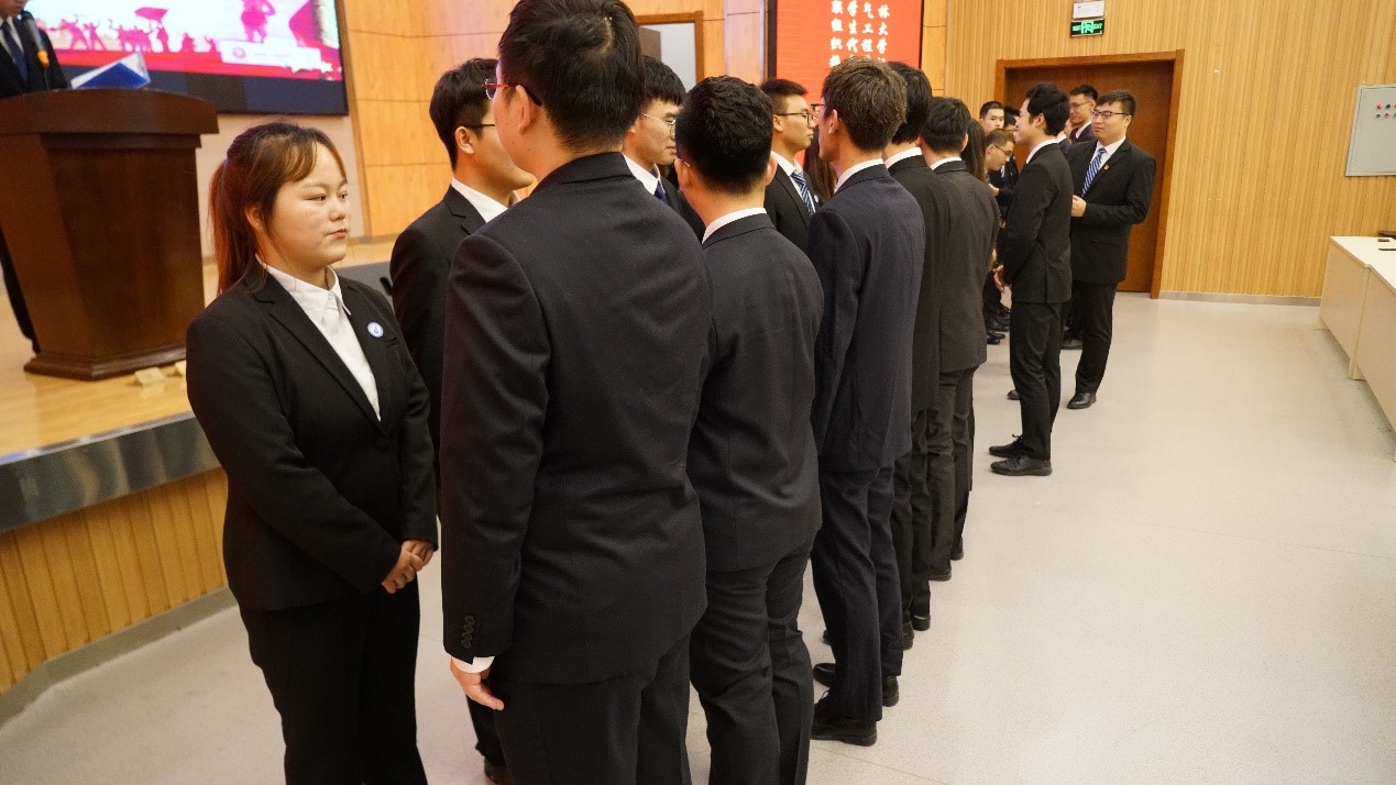 大会在激昂壮阔的中国共产主义青年团团歌声中拉开序幕。大会首先审议并通过了第十五届学生会主席吴广栋同学代表分团委、学生会做的工作报告,回顾了一年来第十五届分团委学生会的工作历程。随后,院党委副书记兼副院长周伟老师为第十五届团学组织主要学生干部颁发了任职证书。任职证书颁发仪式结束后,第十五届分团委副书记于淇同学宣读了第十六届团学组织主要学生干部候选人名单,候选人从个人履历、工作经历总结、工作的认知与理解和未来工作展望四个部分依次上台做竞聘演讲,现场气氛十分热烈。演讲结束后,与会老师和学生代表现场进行投票、唱票确定十六届团学组织主要干部最终人选。大会认定2018级史博日同学当选第十六届分团委副书记,张起源同学、张雪洋同学当选学生会执行主席,大会还选举产生了分团委、学生会、新闻媒体社、社团联合会各部门负责人。紧接着,进行了第十五届、第十六届团学联交接仪式,仪式上大家共同观看了十五届部员们为学长学姐们制作的视频,一声声感谢,一句句祝福,真挚深情,温暖人心。2019级郝毅同学作为优秀干事代表发言,他表示在今后的学生工作中,一定履行团学组织成员职责,兢兢业业为同学们服务,为学院的发展贡献自己的一份力量。最后,学院党委副书记、副院长周伟老师发表总结讲话。他高度肯定了第十五届团学组织成员的工作成绩,并对新当选的团学组织主要学生干部提出了殷切希望和明确要求,希望他们向十五届团学组织成员学习,成为团结一致、甘于奉献的优秀集体。
