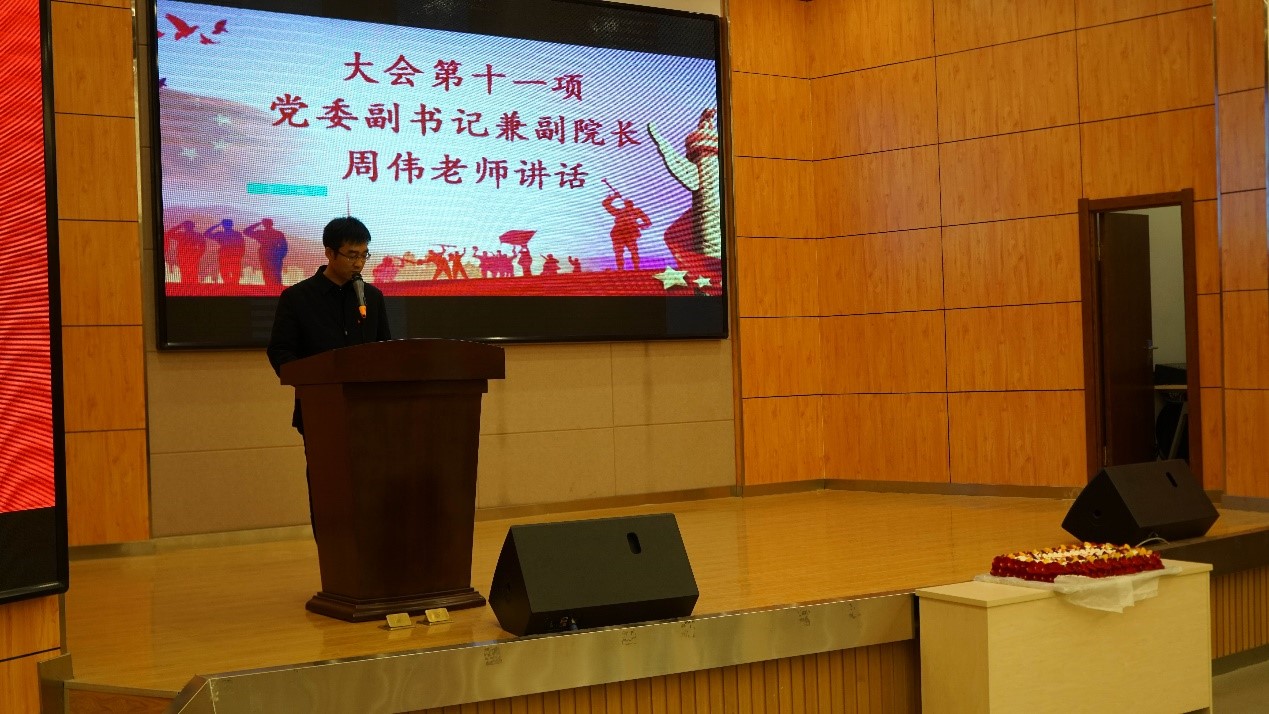 20201023日晚6:30,女同av 第十六届学生代表大会暨团学组织换届大会在朝阳校区图书馆四楼报告厅隆重举行。女同av 党委副书记兼副院长、2018级辅导员周伟老师,2019级、2020级辅导员马姗姗老师以及学院博士生兼职辅导员出席此次大会,参加此次大会的还有第十五届团学组织主要学生干部和各年级学生代表。