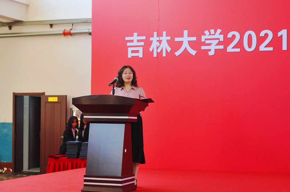 最后,院长嵇艳鞠教授致辞,她对全体毕业生顺利完成学业、即将踏上新征途表示衷心的祝贺,并向他们的父母和教师表达深深的敬意。在离别之际,她为即将踏入社会的毕业生提出四点希望:一是永葆一颗进取之心,脚踏实地,追求卓越;二是坚守一颗责任之心,甘于奉献,勇于担当;三是修炼一颗豁达之心,热爱生活,达观处事;四是常怀一颗感恩之心,心存大爱,饮水思源。嵇艳鞠院长深情寄语,母校永远是同学们的坚强后盾和心灵家园。在建党一百周年之际,祝全体毕业生前程似锦,平安幸福,创造出更精彩的篇章。