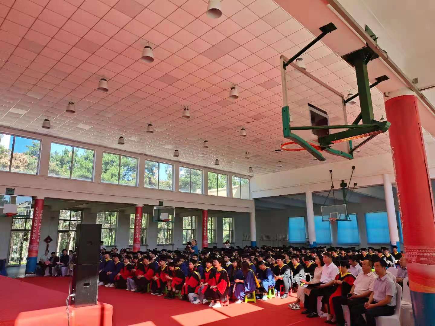 北区综合办公室主任李玉堂,北区学生工作办公室主任左振鹏,北区教务办主任张宇,学院领导班子全体成员,院教学委员会主任陈祖斌,毕业年级班导师,各系主任,学院相关职能部门负责人,教师代表及2021届全体毕业生参加典礼。毕业典礼由党委副书记兼副院长周伟主持。