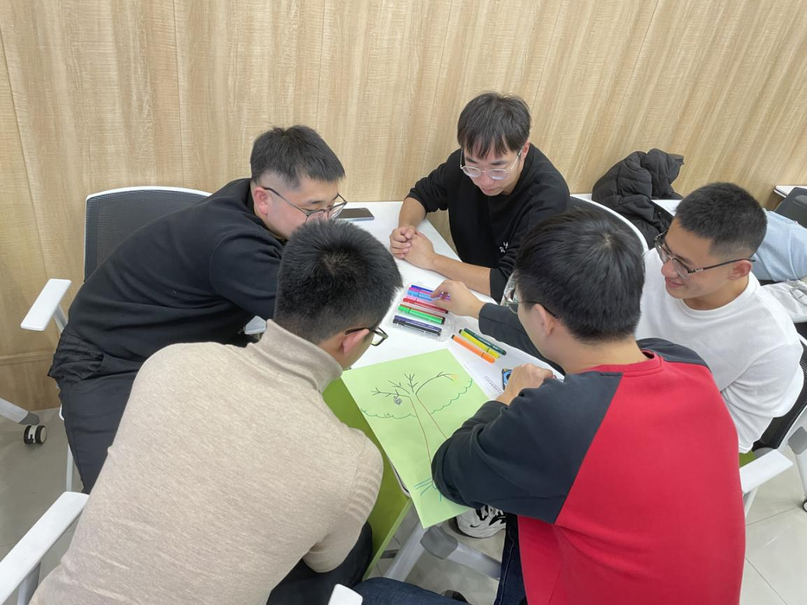 研究生班长高宁负责收集协助组织,共有32名研究生参与此次活动。本次活动分为两个阶段。第一阶段是热身阶段,首先让大家鼓掌欢迎自己进入人生新的阶段,之后,让参与的同学们进行简短的自我介绍,增加彼此之间的熟悉感,放下戒备,让同学们进入放松的状态。第二阶段为游戏比拼阶段,将同学们分组,每个小组抽取单词卡片,经过组内商讨分工后,用身体摆出抽到的单词,增强小组内成员间的沟通合作。之后,带领大家进行“解密千千结”、“绘制团体树”的环节,并进行游戏体验和团体树概念创作理念的分享。最后,让同学分享参与此次活动的感受与收获。