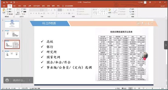 首先庞笑雨同学非常详细地介绍了选择国企的原因以及国家电网的相关部门,让大家对国家电网有了更深的理解,不再盲目的进入国企。接下来王小欢同学深入的和大家分享面试的技巧,告诉大家要明白自己的优势,坚定自己的目标,利用资源广泛关注在求职信息,重点关注就业网和各省的人事资源网。从高校、研究所、国企私企等方面告诉大家该如何准备。