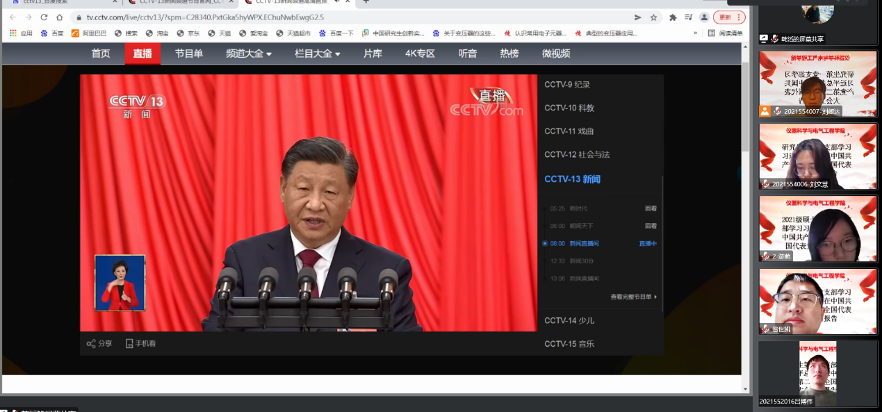 硕士学生第一党支部全体党员、预备党员、发展对象及入党积极分子在线上全程观看了会议直播。