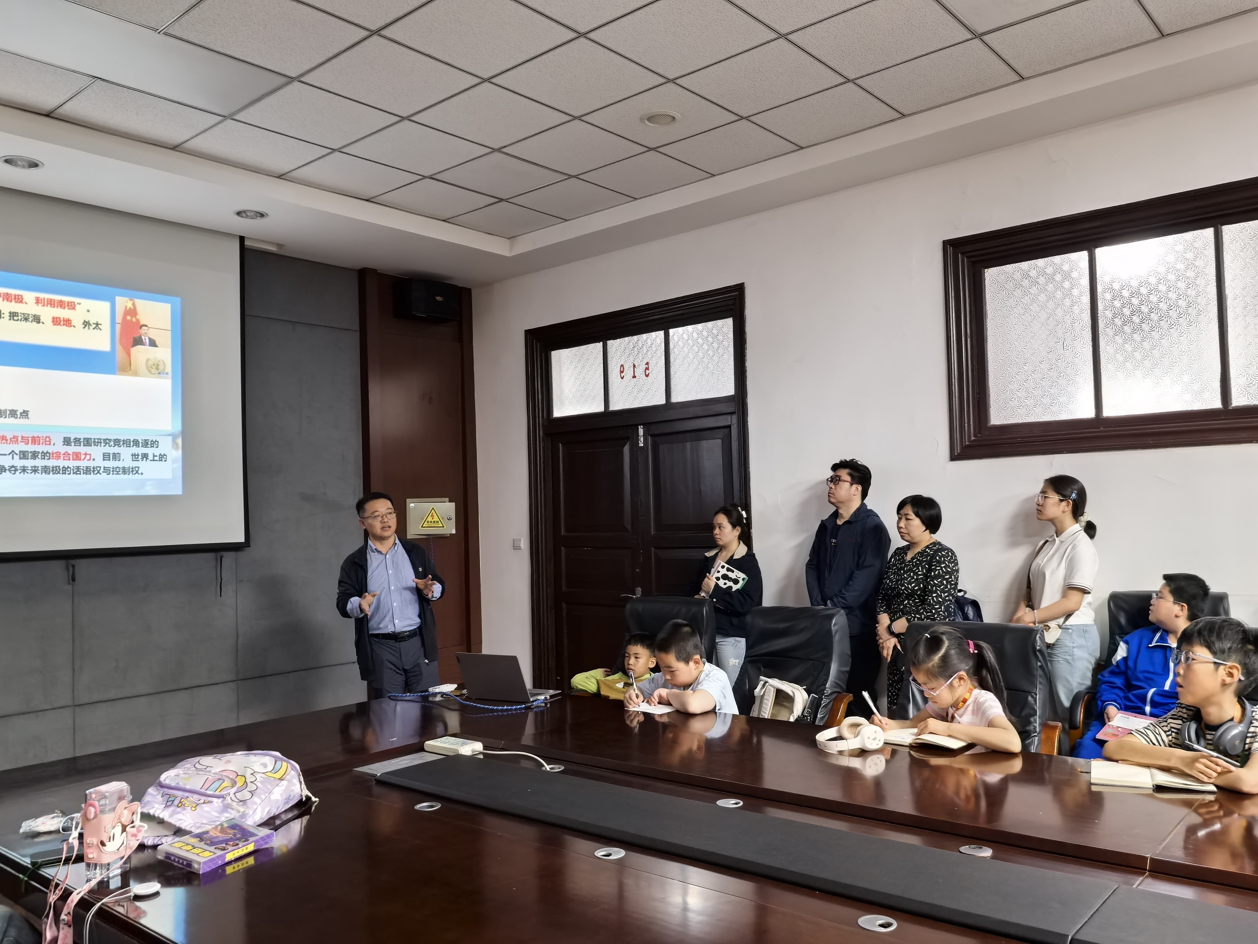 黄大年纪念馆、地学部“院士长廊”,宣讲科学家故事,弘扬黄大年教授等科技工作者的爱国奉献精神,激励青少年树立科技报国志向。深部探测与成像全国重点实验室张楠教授以“深冰下地质体钻探 ——‘走近’南极深冰下未知新世界”为题开展科普报告,生动讲解了南极深冰探测的技术挑战与科学意义。国家地球物理探测仪器工程技术研究中心王超工程师以“航空物探知多少”为题的科普讲座,带领听众了解航空地球物理勘探技术的应用及国家工程中心近年来在航空物探领域所取得的系列显著成果。
