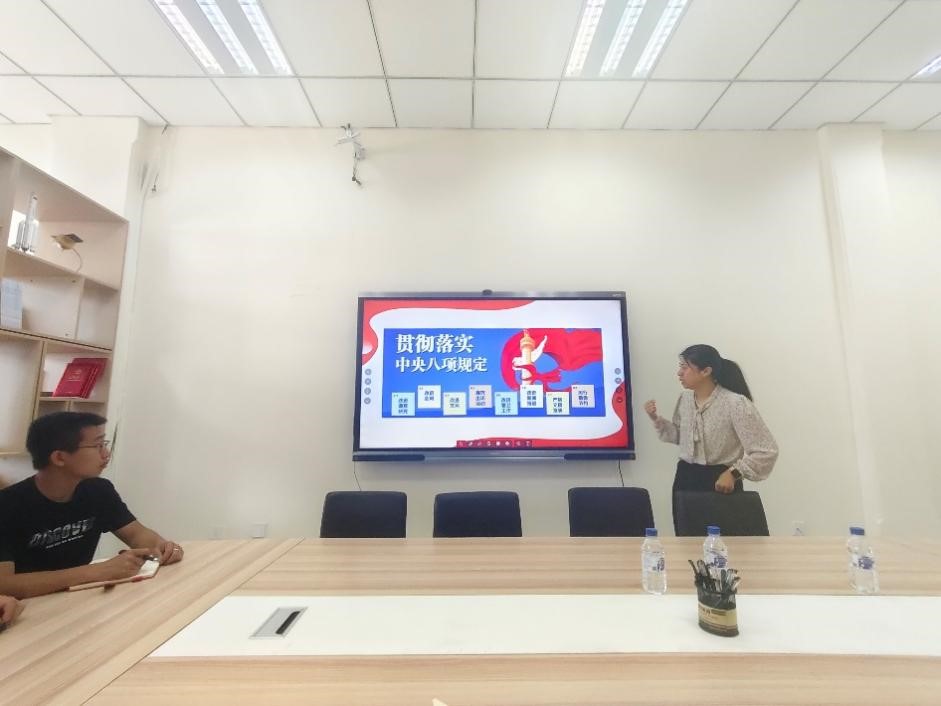 实验中心教工党支部开展深入贯彻中央八项规定精神学习教育交流研讨会,会议由党支部书记万云霞同志主持,支部全体党员参加会议。