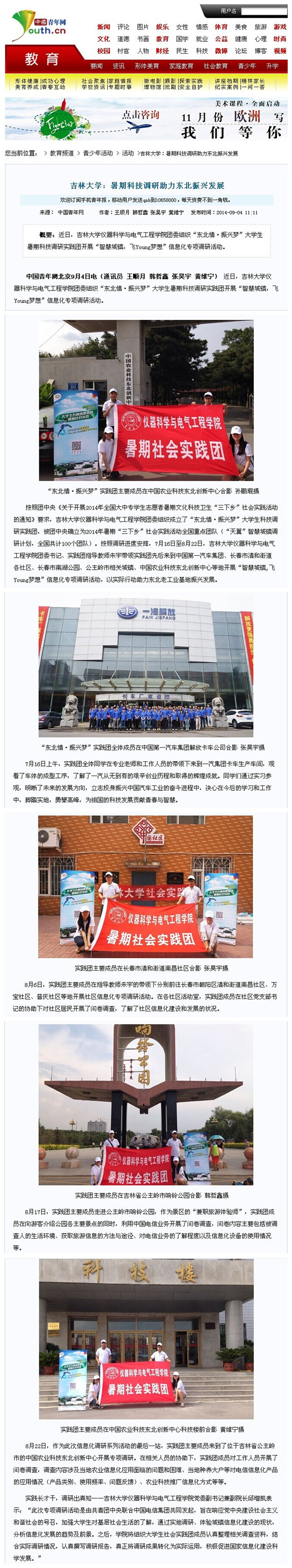 中国青年网由共青团中央主办,是国内最大的青年主流网站,也是全国大中专学生暑期“三下乡”社会实践活动官方网站。此次报道是继2014年7月11日中国青年网以《“东北情·振兴梦”吉大学子暑期科技调研实践》报道女同av