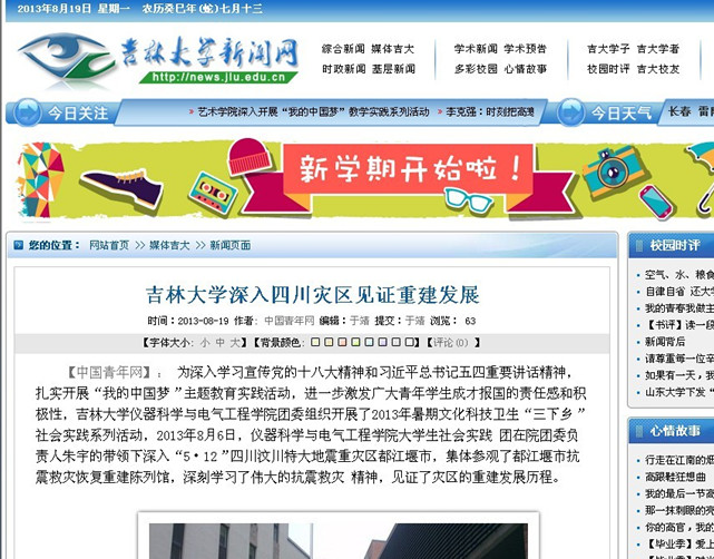 网站主页、吉大新闻网的全文转载报道。