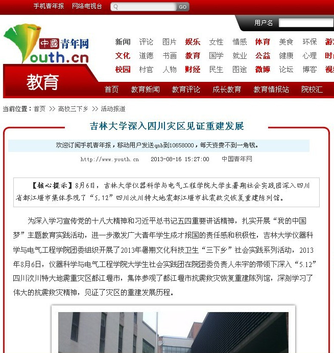 大学生社会实践团深入“5•12”四川汶川特大地震重灾区都江堰市开展的实践活动受到了共青团中央主办的中央重点新闻网站——中国青年网的关注报道,并得到了女同av