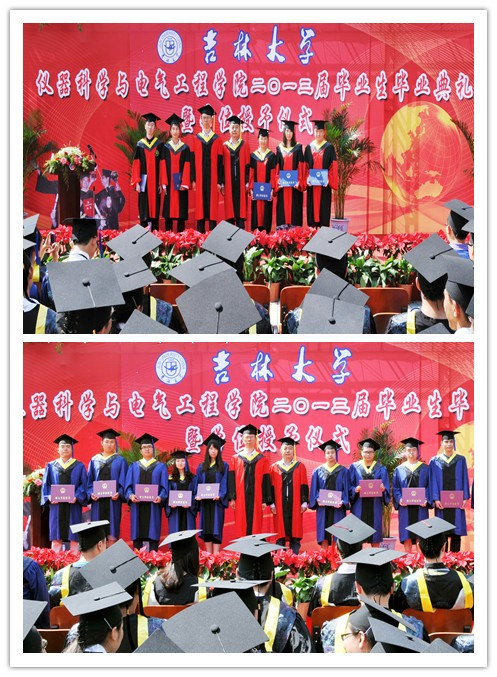 院长、博士生导师林君教授,学院党委书记余国友教授,院党委副书记兼副院长邱增凯老师,副院长、博士生导师嵇艳鞠教授,副院长陈祖斌教授,副院长王言章副教授,副院长葛晓野老师,教育部重点实验室副主任孙忠老师,教育部教学指导委员会委员、博士生导师程德福教授,院学位委员会主任、博士生导师田地教授,院教学委员会主任王应吉教授,仪器科学系主任兼实验中心主任凌振宝教授,电气工程系主任刘长胜副教授及学院各系老师、毕业生各班班导师和学院各办公室的全体老师出席了毕业典礼。女同av