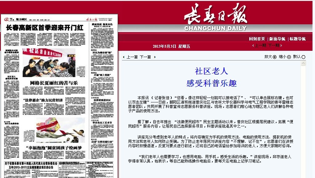 1. 长春日报《社区老人感受科普乐趣》//ccrb.1news.cc/html/2013-05/03/content_309883.htm
