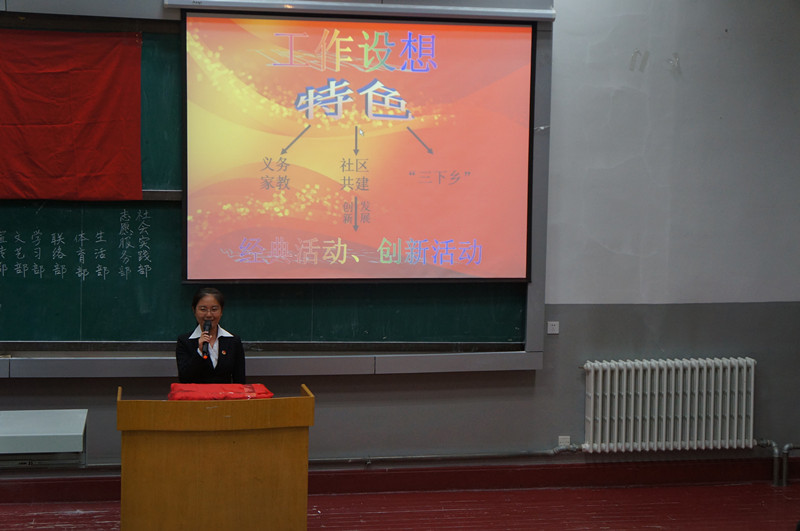 团委学生会章程》。随后,大会审议并通过了第七届学生会主席许鹏同学的学生会工作报告,之后院团委书记刁庶老师为第七届分团委、学生会主要学生干部颁发任职证书。颁发任职证书仪式结束后,学院第七届分团委副书记包志强同学宣读了第八届学生会主要学生干部候选人名单,随后候选人依次上台演讲竞职,他们结合PPT演示详细讲述了自己的竞聘理由和优势、组织和岗位认识以及任职后的工作设想。演讲完毕后学生代表依次上台公开投票,以民主投票方式选举产生了第八届分团委、学生会主要学生干部。之后2011级学生代表韩哲鑫和2012级新生代表李昊阳分别在大会上做了发言,他们分别代表各自所在年级的同学对新一届学生会寄予了希望和祝福。