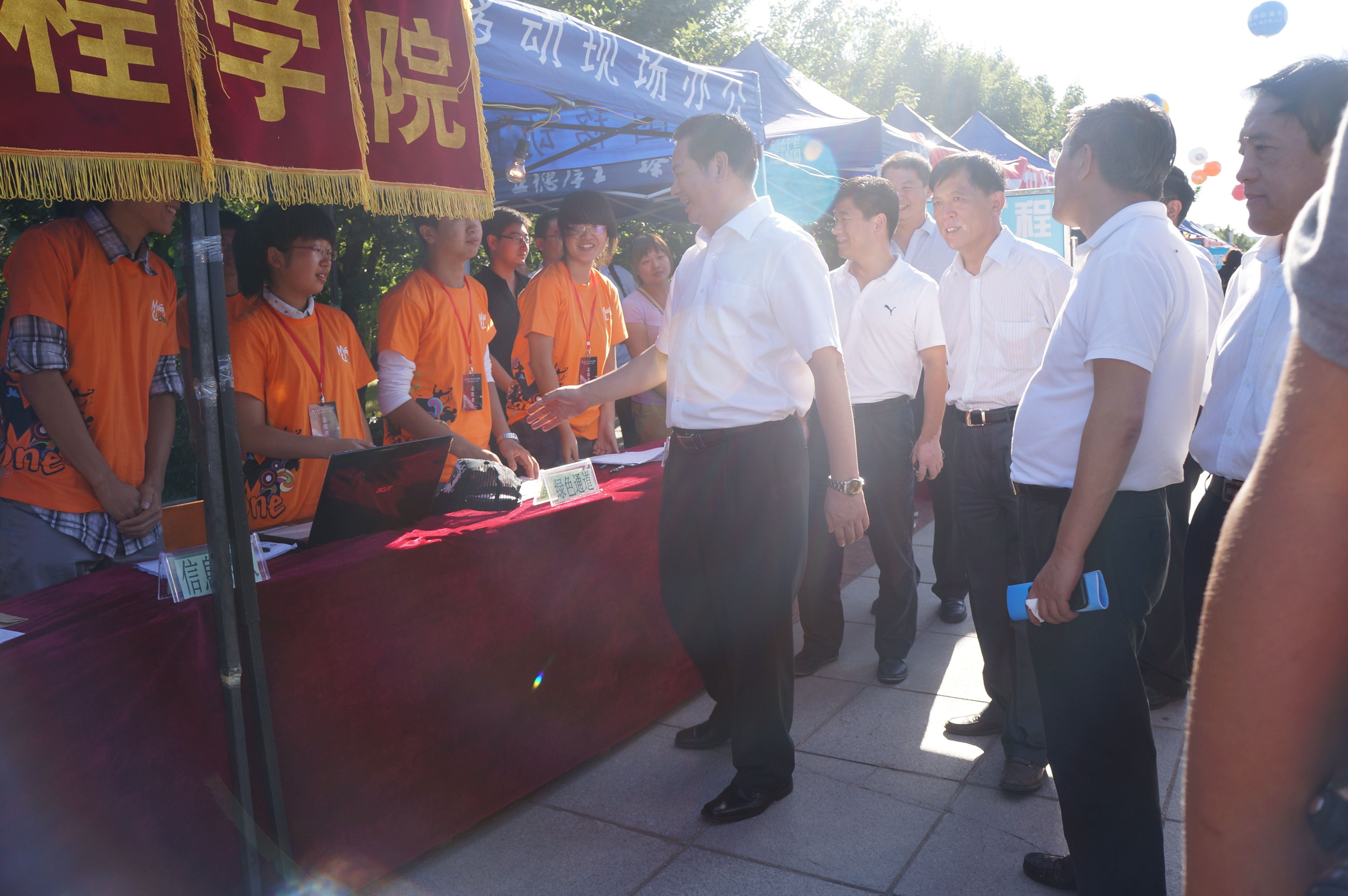 下午15:00,在大家正忙碌工作的时候,校长李元元教授、校党委副书记兼副校长韩晓峰等领导一行亲临现场慰问迎新志愿者和、新生及家长,李元元校长亲切地与迎新志愿者交流,他还鼓励女同av