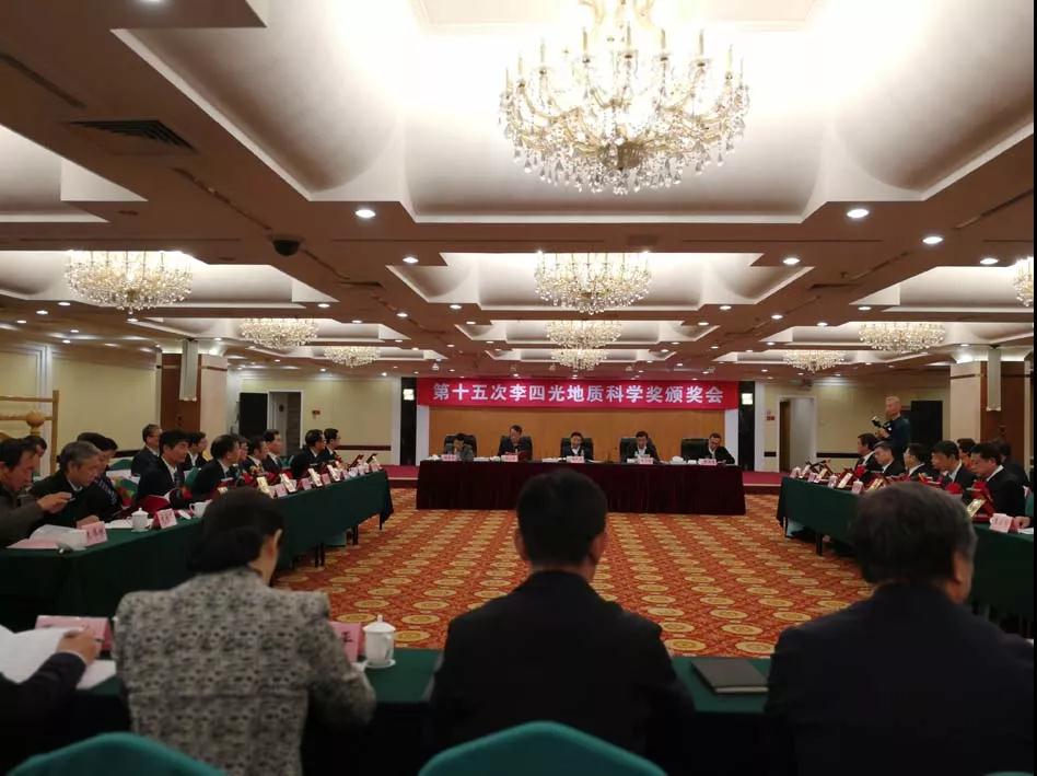 10月26日,第十五次李四光地质科学奖颁奖典礼在北京举行。全国政协人口资源环境委员会副主任、李四光地质科学奖委员会主任姜大明,自然资源部党组成员、副部长凌月明,国家科学技术奖励办公室副主任陈志敏,国务院参事张洪涛以及自然资源部、中国地调局等相关部门的负责人出席了颁奖仪式。