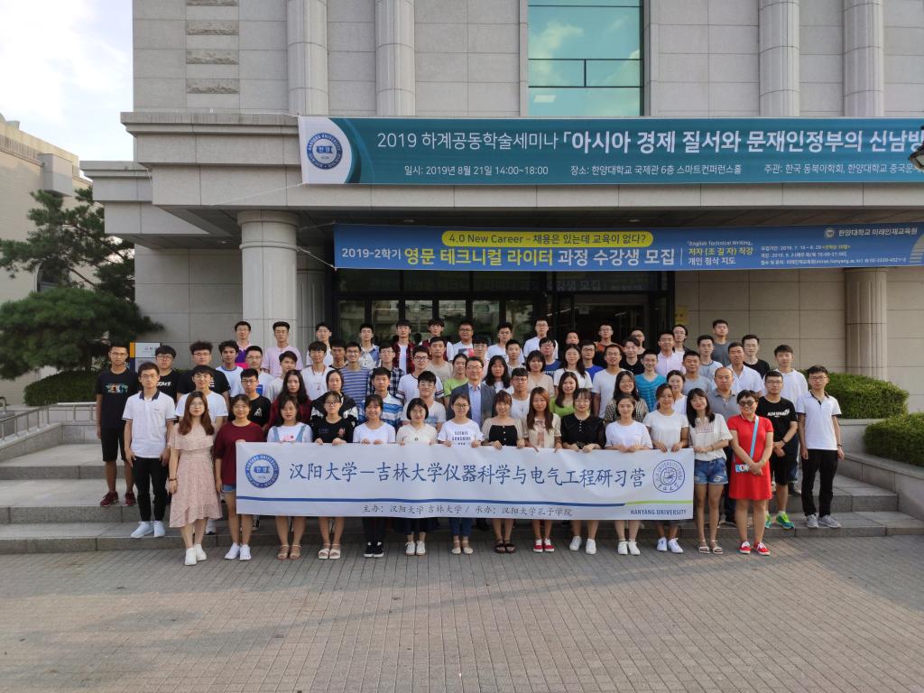 本次访学的目的地为韩国汉阳大学,8月15日,仪电学院访学团与汉阳大学师生代表共同举行了开班典礼,听取了汉阳大学工学院的相关学科介绍。