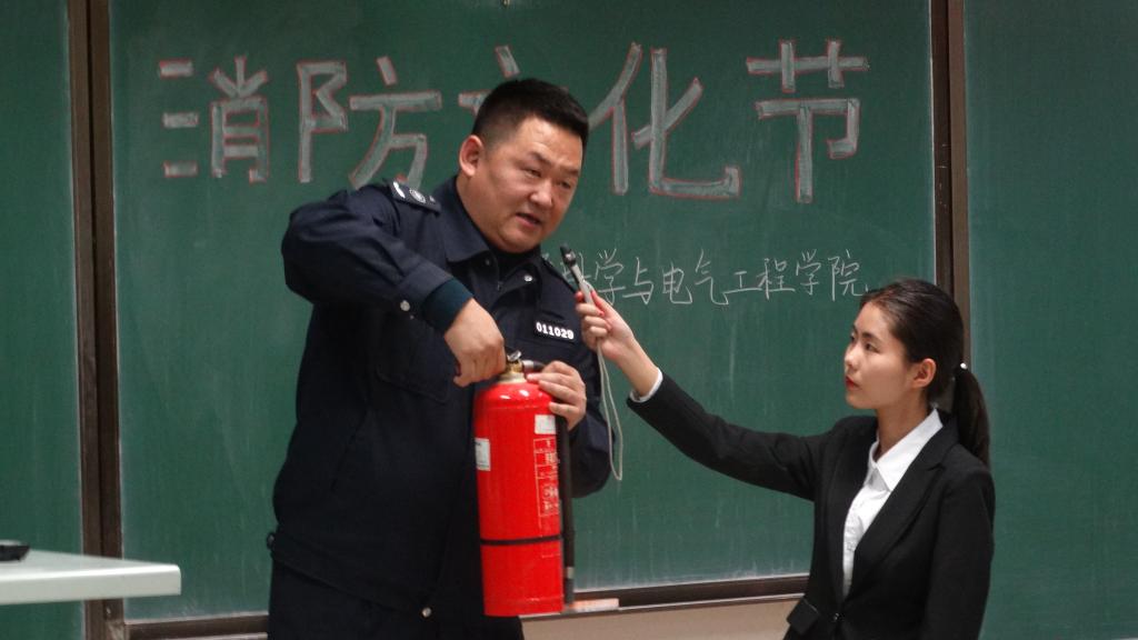 学子介绍了日常生活中的消防安全隐患及处理方法,并现场演示灭火器的正确使用步骤。随后,播放了消防安全宣传视频,同学们对消防安全有了新的认识。视频观看结束,2019级同学依次上台展示消防安全宣传教育作品,作品内容健康向上、构思新颖,赢得了全院师生的阵阵掌声。作品展示过后,进入消防安全知识竞答环节,选手们争先作答、气氛活跃。竞答结束后,同学们意犹未尽,主持人与现场观众进行互动,同学们纷纷举手抢答。互动之后,主持人公布评选结果,邱增凯老师、葛晓野老师和艾维斯老师分别为获奖班级颁发证书。最后,邱增凯老师为本次活动做总结讲话,他强调,作为当代大学生,首先要提高消防安全意识,其次在火情发生时要保持冷静,还要主动学习、掌握自救逃生知识。邱老师呼吁同学们关注消防安全,提高消防意识,为营造关心消防、重视消防、群防共治的良好氛围共同努力。至此,本次消防文化节圆满结束。