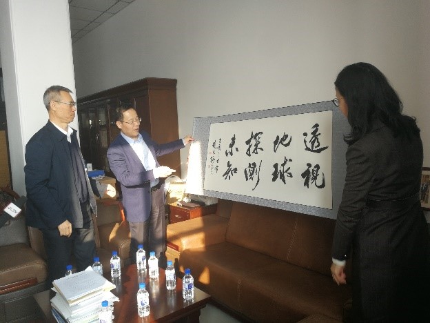 之后,于厅长与林院士等人在地质宫长春厅合影留念,吉林省电视台对慰问活动进行了现场采访。