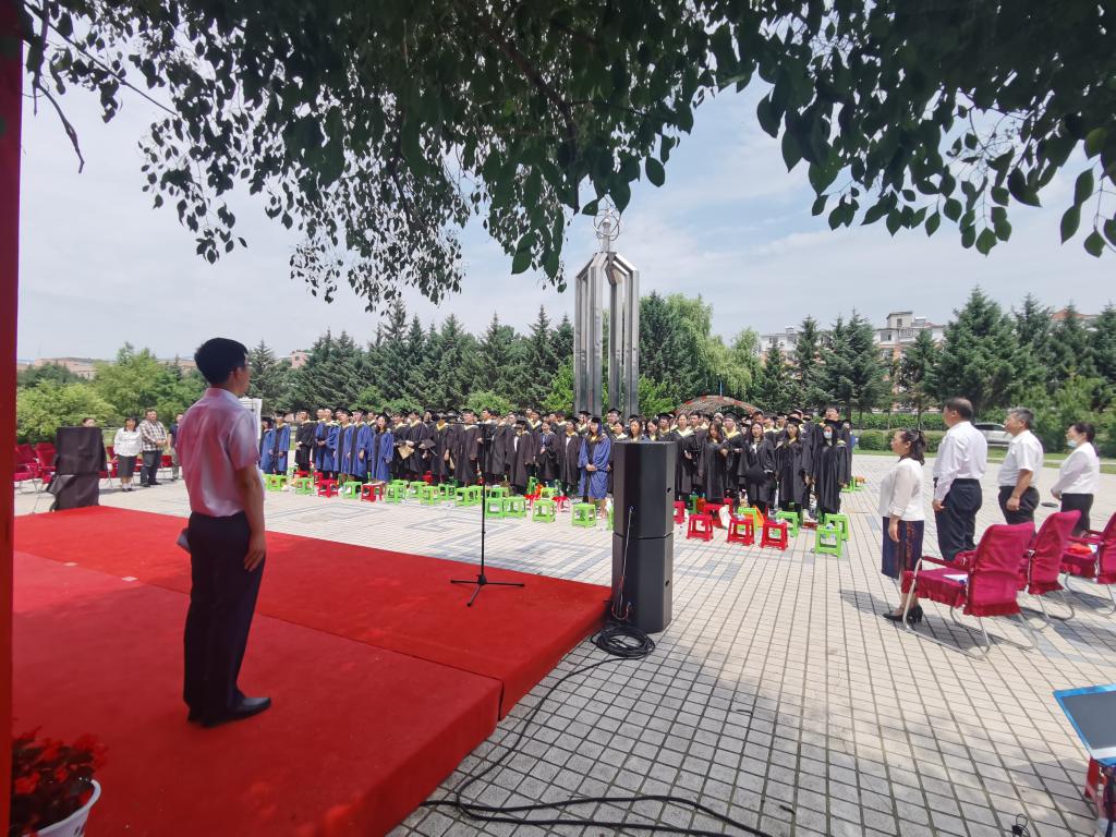 北区综合办公室主任戴世和,北区学生工作办公室主任贾晓辉,北区教务办主任苗广文,吉大致远资产经营有限公司副总经理、原16级辅导员王冕,学院领导班子全体成员,院教学委员会主任陈祖斌,院学科学位评定分委会副主席于生宝,毕业年级班导师,各系主任,学院相关职能部门负责人,教师代表及全体返校毕业生参加典礼。毕业典礼由党委副书记兼副院长周伟主持。