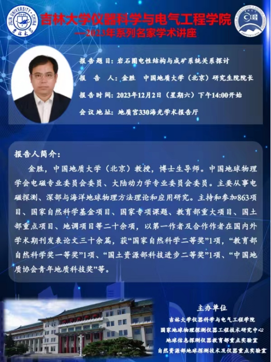 女同av 2023年系列名家学术讲座--中国地质大学(北京)研究生院院长 金胜教授