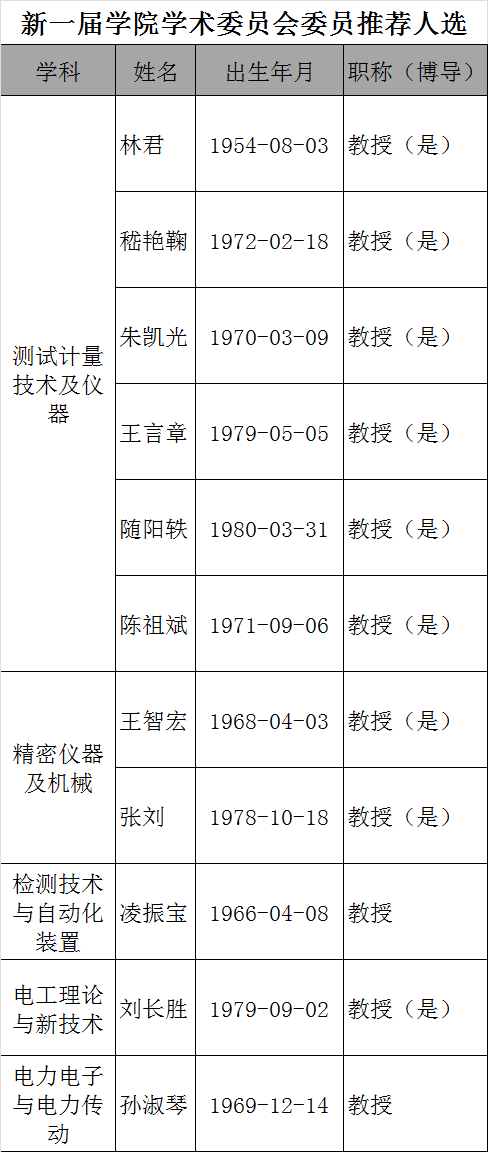 根据学校文件要求,对新组建的女同av 学术委员会委员推荐人选予以公示,具体名单如下。