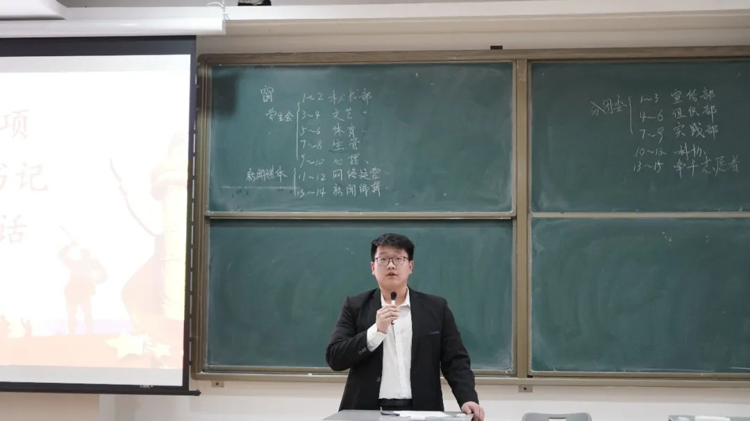 在经信教学楼第八阶梯教室召开了第十六届团学联组织纳新选拔大会。学院团委负责人马姗姗出席了本次大会,会议由学生会执行主席张雪洋同学主持。