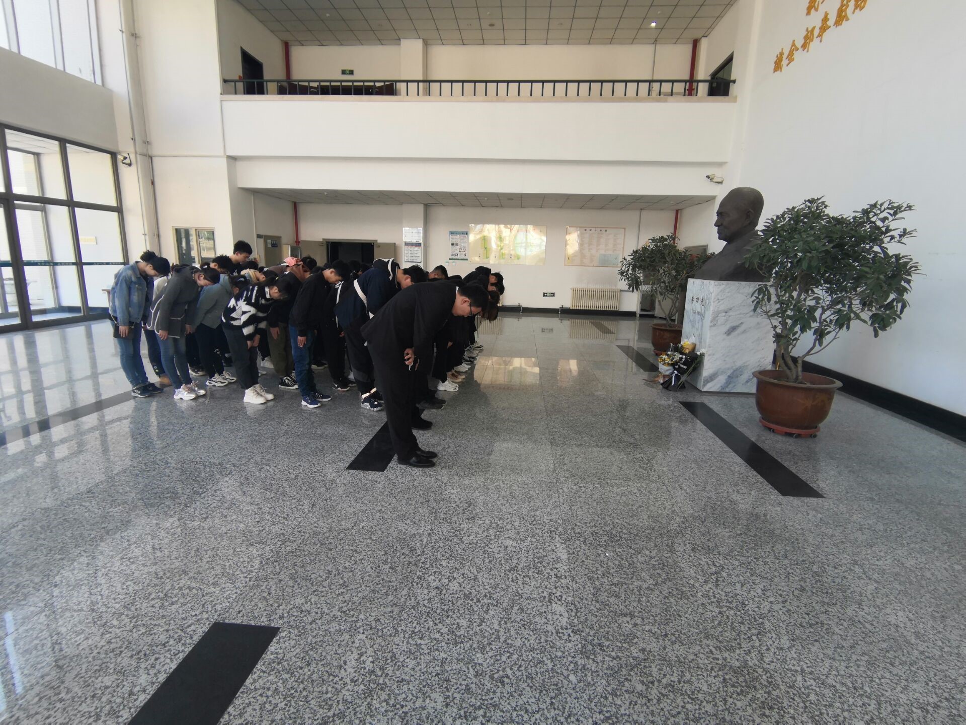 青年学生分别前往李四光实验楼和黄大年纪念馆,在两位前辈的纪念雕像前整齐列队、静默肃立,由学生代表向在场同学讲述两位先驱的爱国事迹与科研成就,致敬他们为国家和学校的发展做出的巨大贡献。