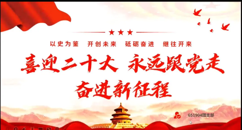 651904团支部在腾讯会议举办“喜迎二十大、永远跟党走、奋进新征程”主题团日活动。活动由高思琦同学主持,651904班25名团员参与其中。