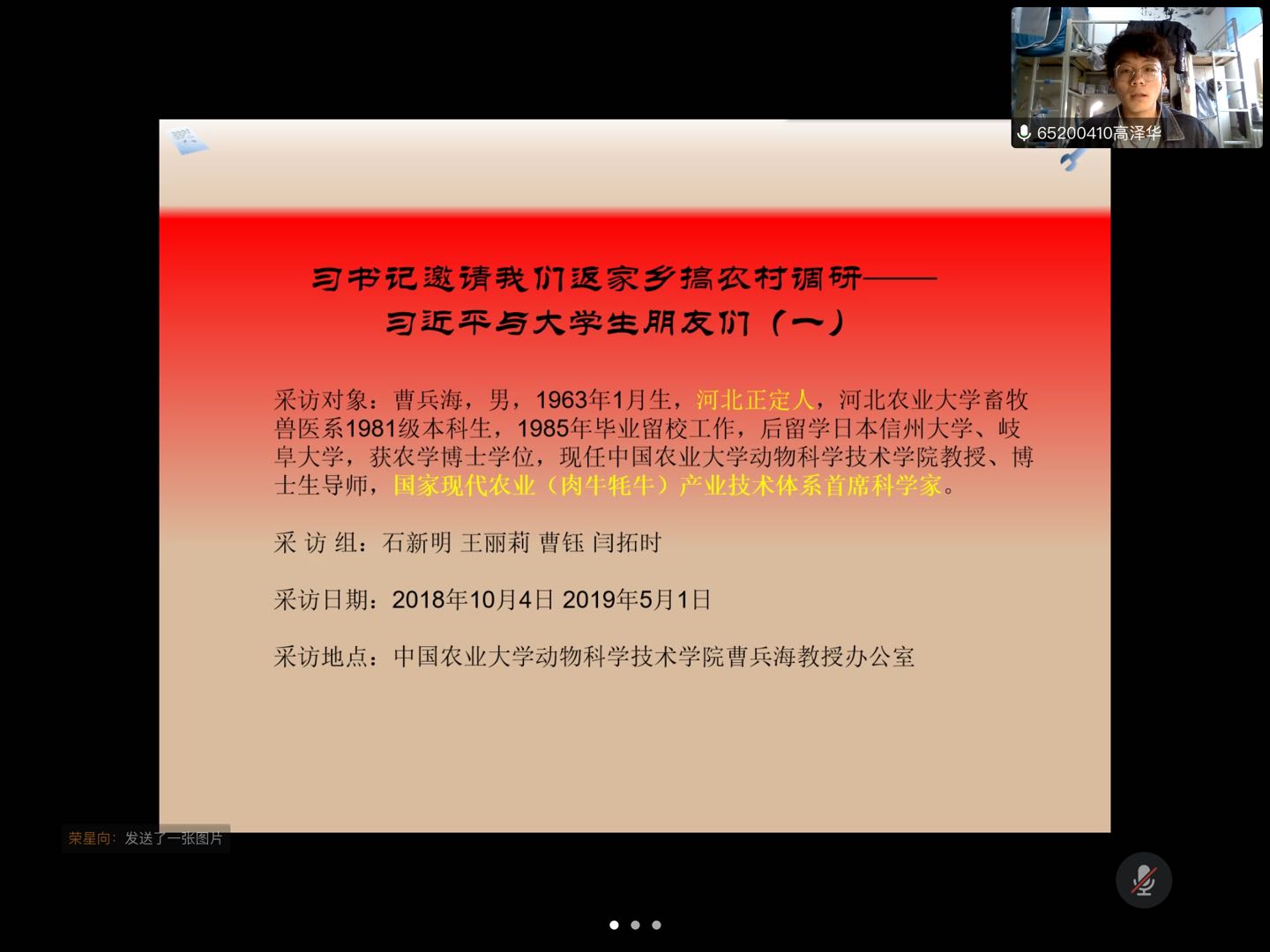 652004团支部于线上开展了精读《习近平与大学生朋友们》主题团日活动,活动由团支部书记沈桑渊同学主持,652004班全体同学出席参加。