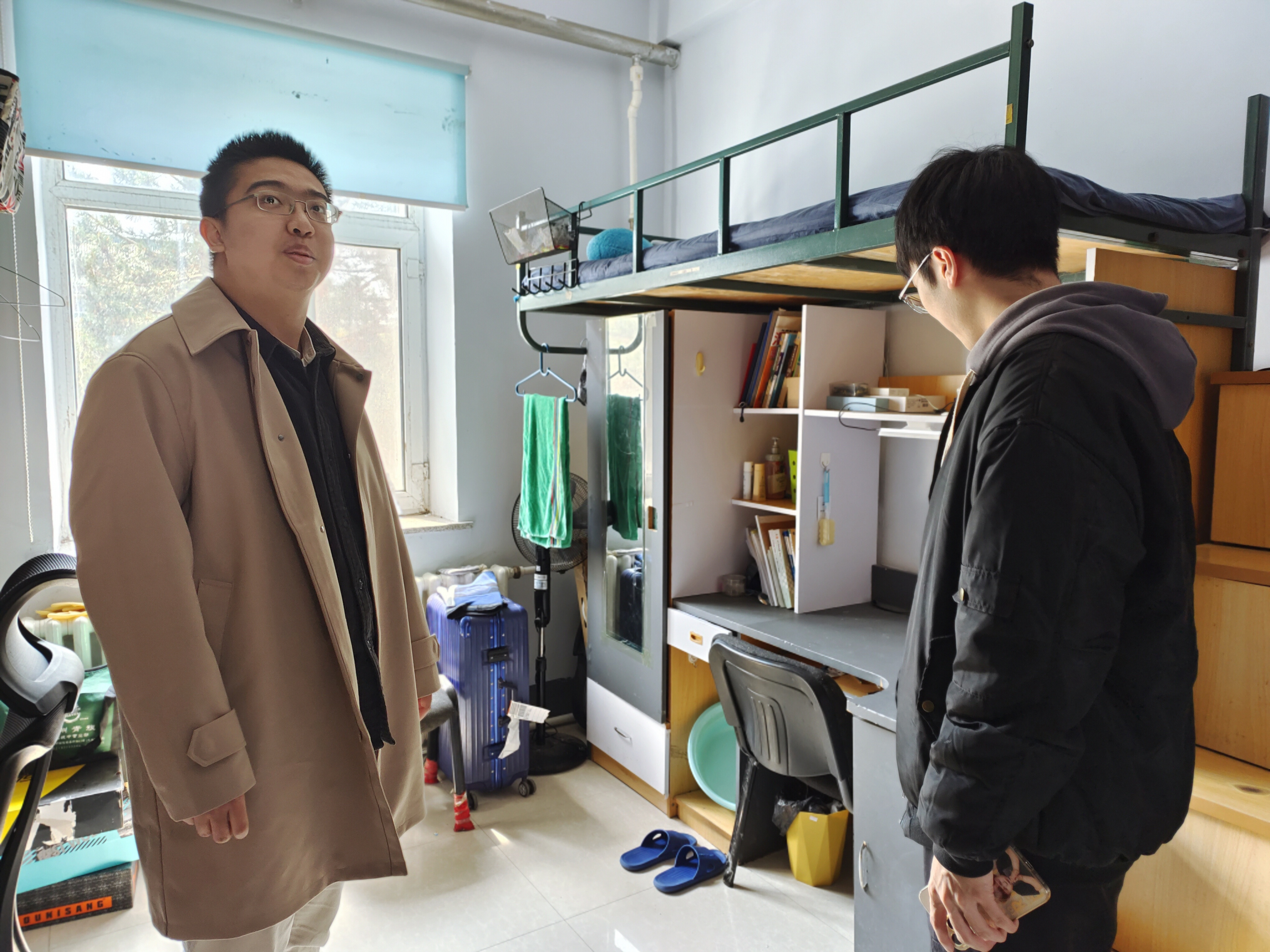 随后,一行人又对研究生寝室进行了检查,检查的内容包括宿舍整体卫生状况及用电安全等。周琪老师强调各位研究生要自觉遵守学生公寓管理规定,不使用电热杯、热得快等违章电器,不在寝室内使用明火,做到人走断电。寝室内无人时,要锁好门锁,保管好个人贵重物品。对于卫生不佳的宿舍,周琪老师提出了整改措施;在用电安全方面,各位研究生都能够做到人走电断,未发现研究生在寝室使用违章电器。