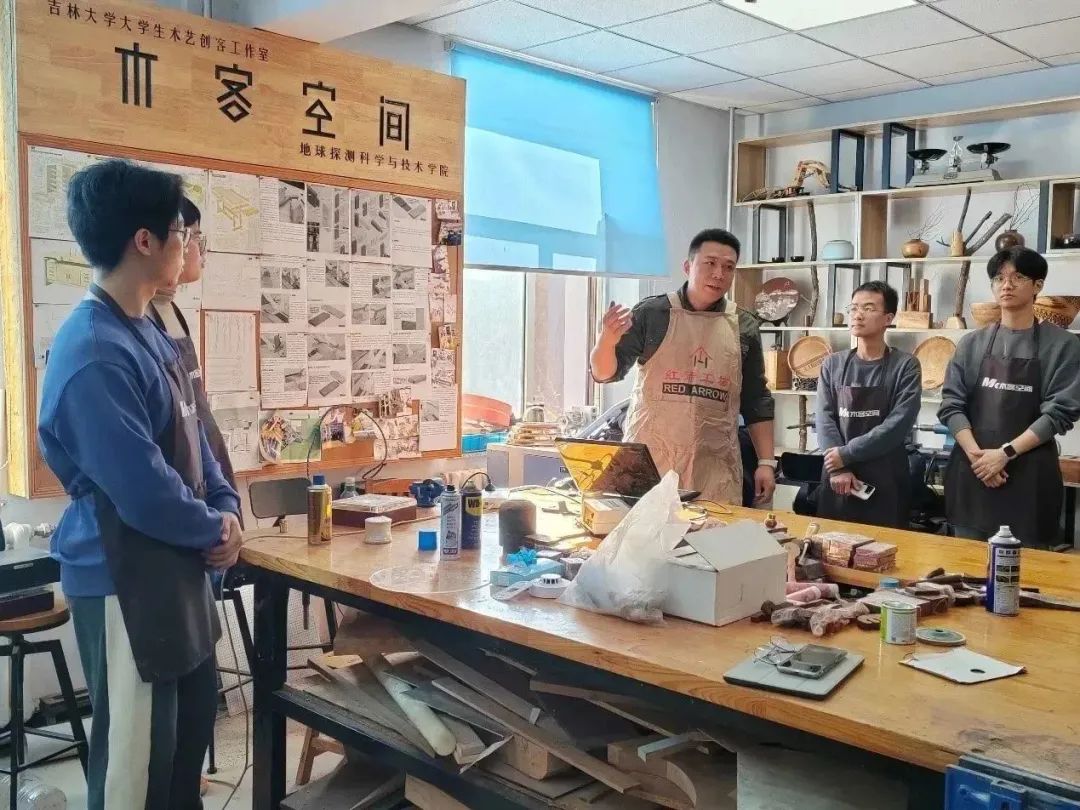 地球科学学院党委副书记兼副院长李阳老师担任木工导师。李阳老师详细介绍了木客空间的发展历史、木艺制品的类别、创作工具以及创作流程。在展示了往届优秀作品后,同学们开始巧妙构思,精心思考,在李阳老师的指导下将其创意制成作品。室外白雪皑皑,屋内硕果累累。经过近四个小时的制作,同学们做成的木梳、发簪、耳环等工艺品赢得了大家的阵阵掌声。