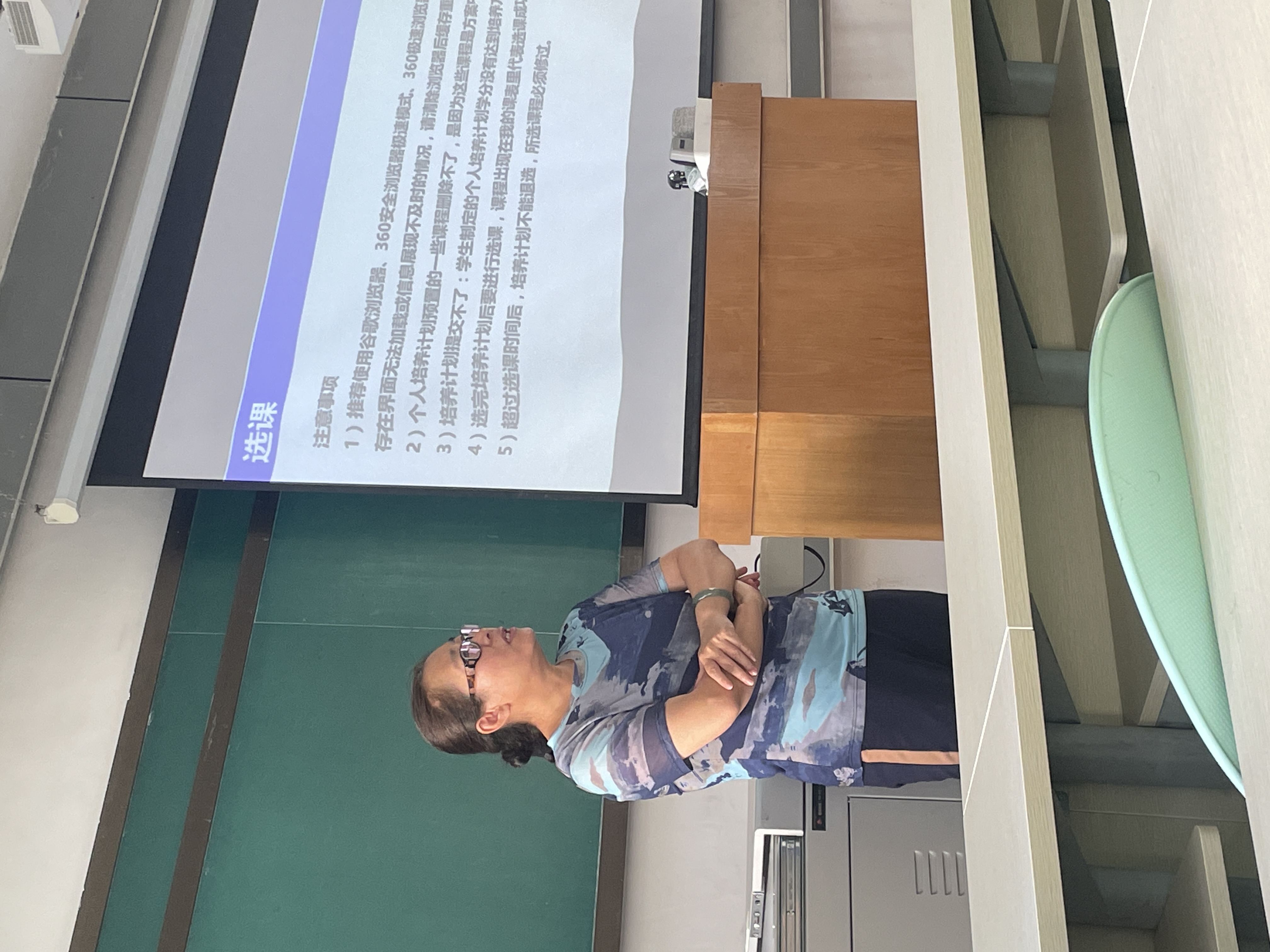 会上,学院研究生办公室主任杨冬老师对各层次、各专业研究生培养方案进行了系统阐释,提醒大家务必按时选课,符合外语免修条件的同学一定要按时提交免修申请。随后,德育助管赵岩同学现场演示了选课流程,对往届同学在选课时出现的常见问题进行了解答。最后,杨老师和周老师进行了现场答疑。