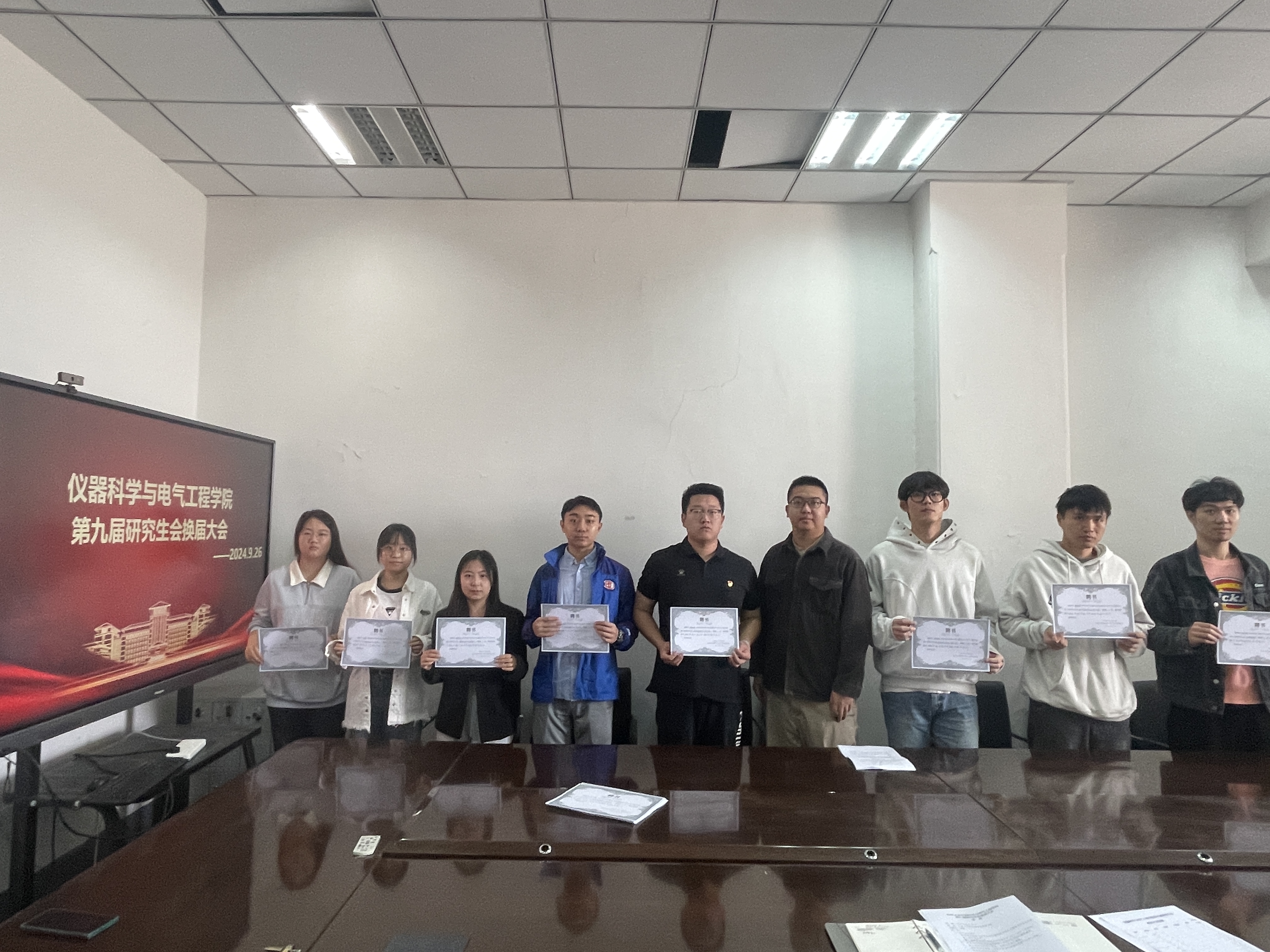 第九届研究生会换届大会在朝阳校区地质宫顺利召开。学院研究生办公室主任杨冬老师、研究生辅导员周琪老师、第八届研究生会全体负责人、第九届研究生会、负责人候选人以及各年级研究生代表等参加大会,会议由仪电学院博士学生第二党支部书记郝毅主持。