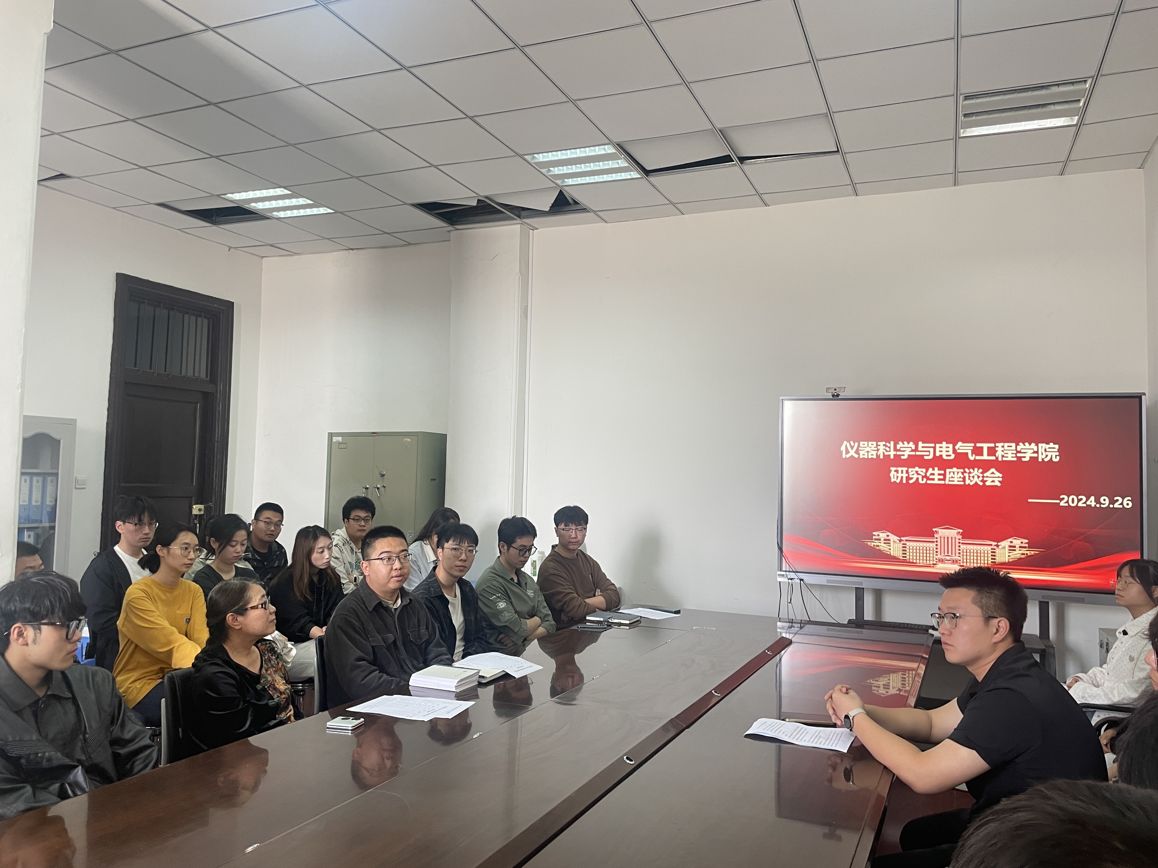在朝阳校区地质宫召开了新学期研究生座谈会,学院研究生办公室主任杨冬老师、研究生辅导员周琪老师、学院全体研究生干部、各年级研究生代表参加会议。