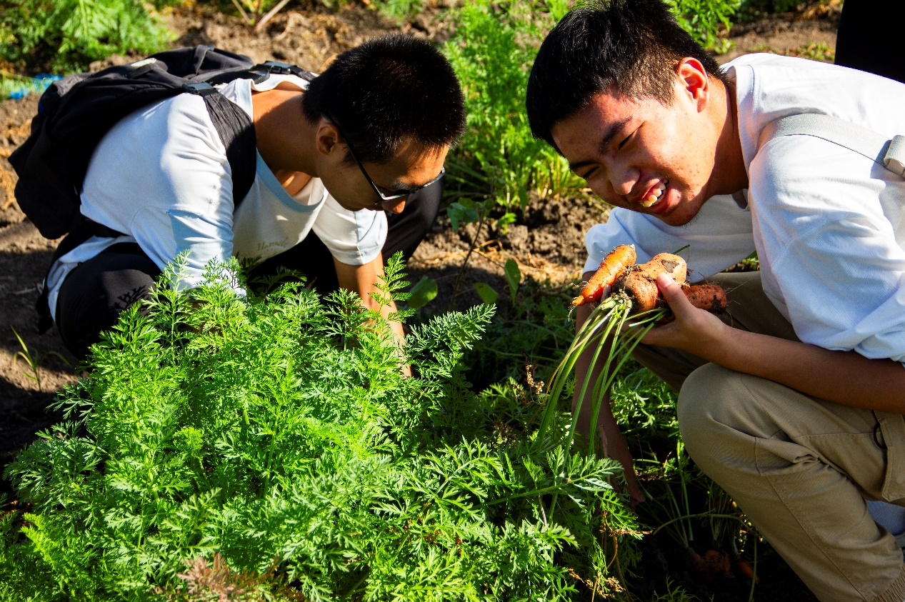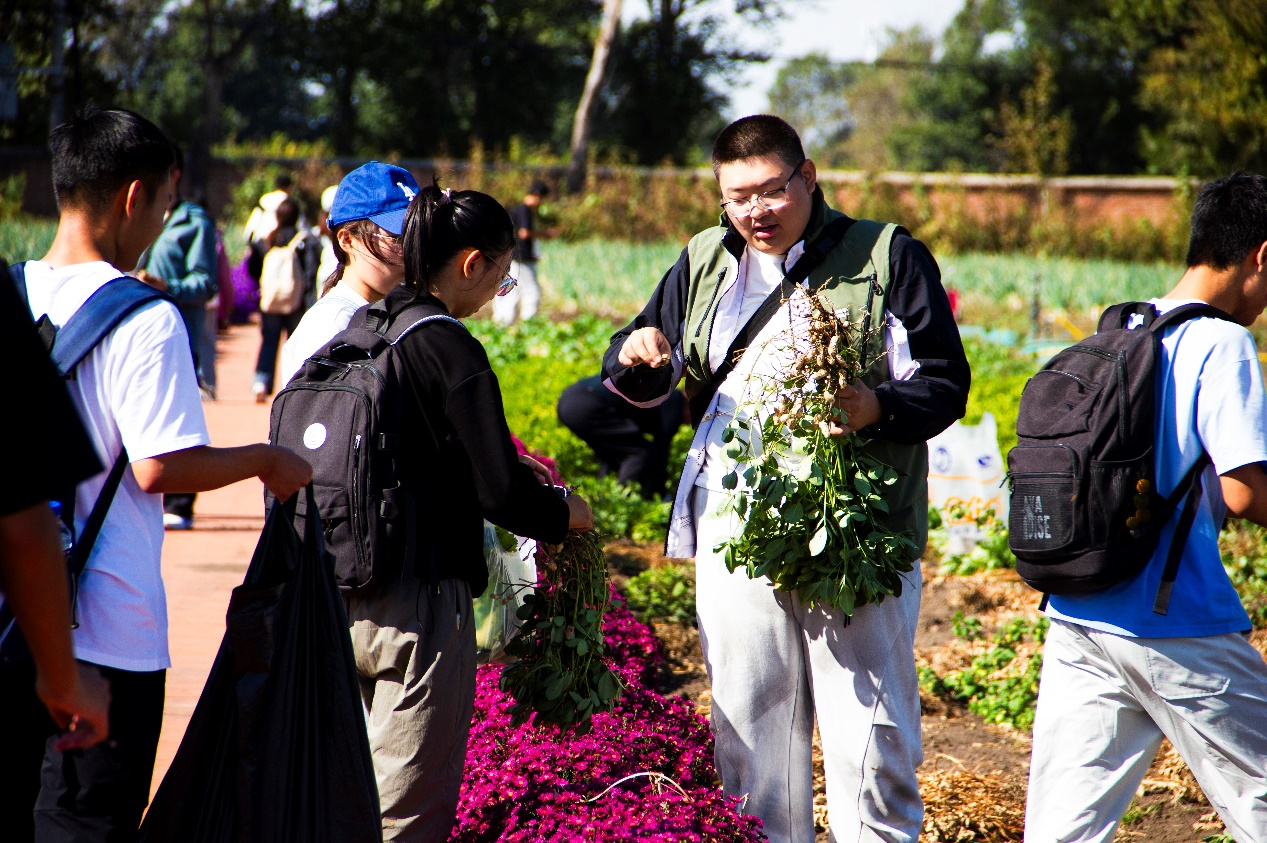 农业实践基地,了解了先进的智能灌溉系统、作物培育技术,观察科技赋能农业的实践成果,认识了仪器在农业方面的运用。随后,同学们进入田地,亲手采摘蔬菜,共享丰收的喜悦,体验农民收获的辛勤。
