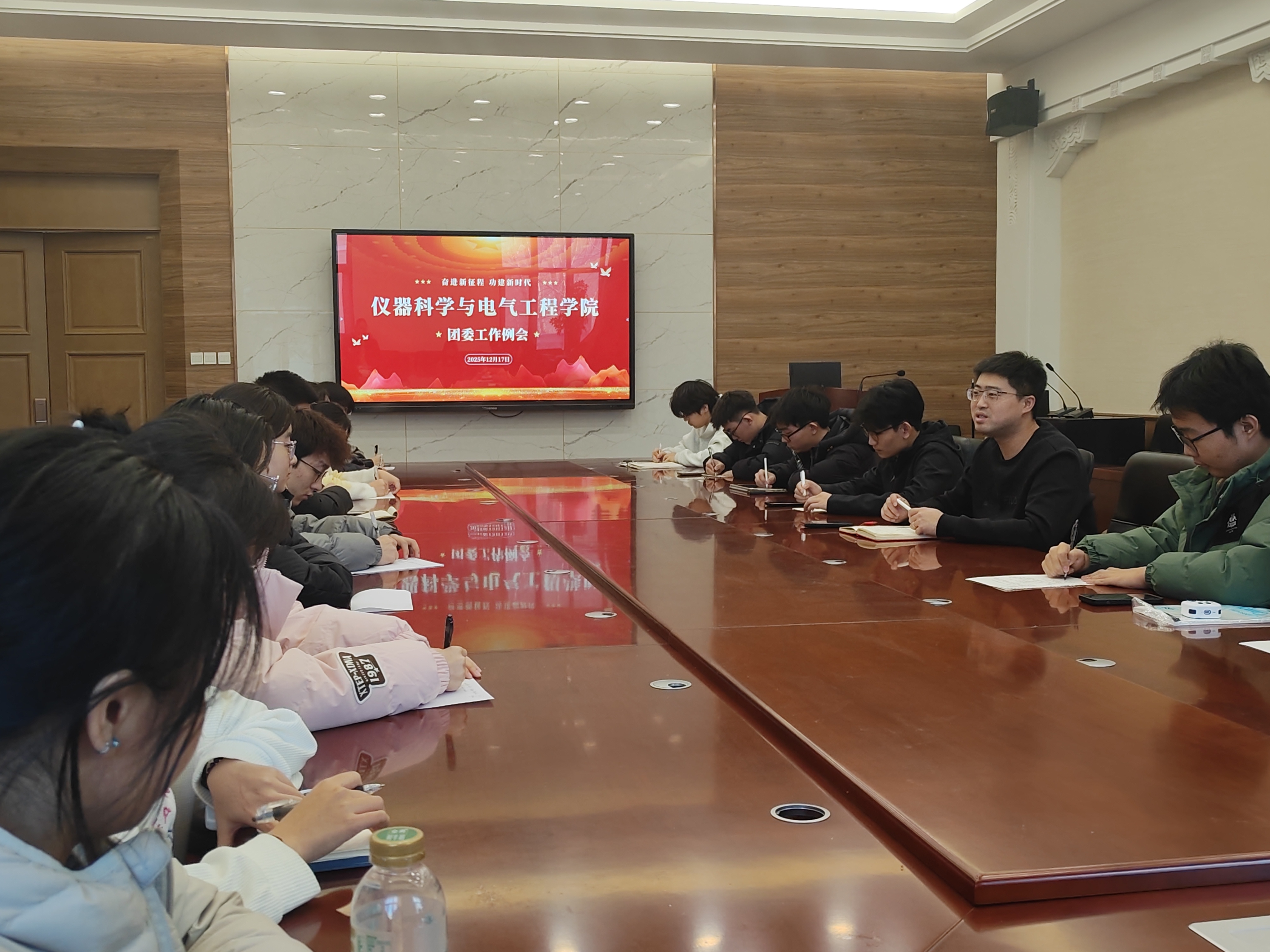团委工作的规范化、系统化水平,明确阶段性任务目标,强化组织引领与服务效能,近日,学院团委组织召开工作例会。本次会议由学院团委负责人包健伦主持,学院团学联组织各部门负责人参加会议,就细化责任分工、规范工作流程及规划未来工作进行研讨与部署。