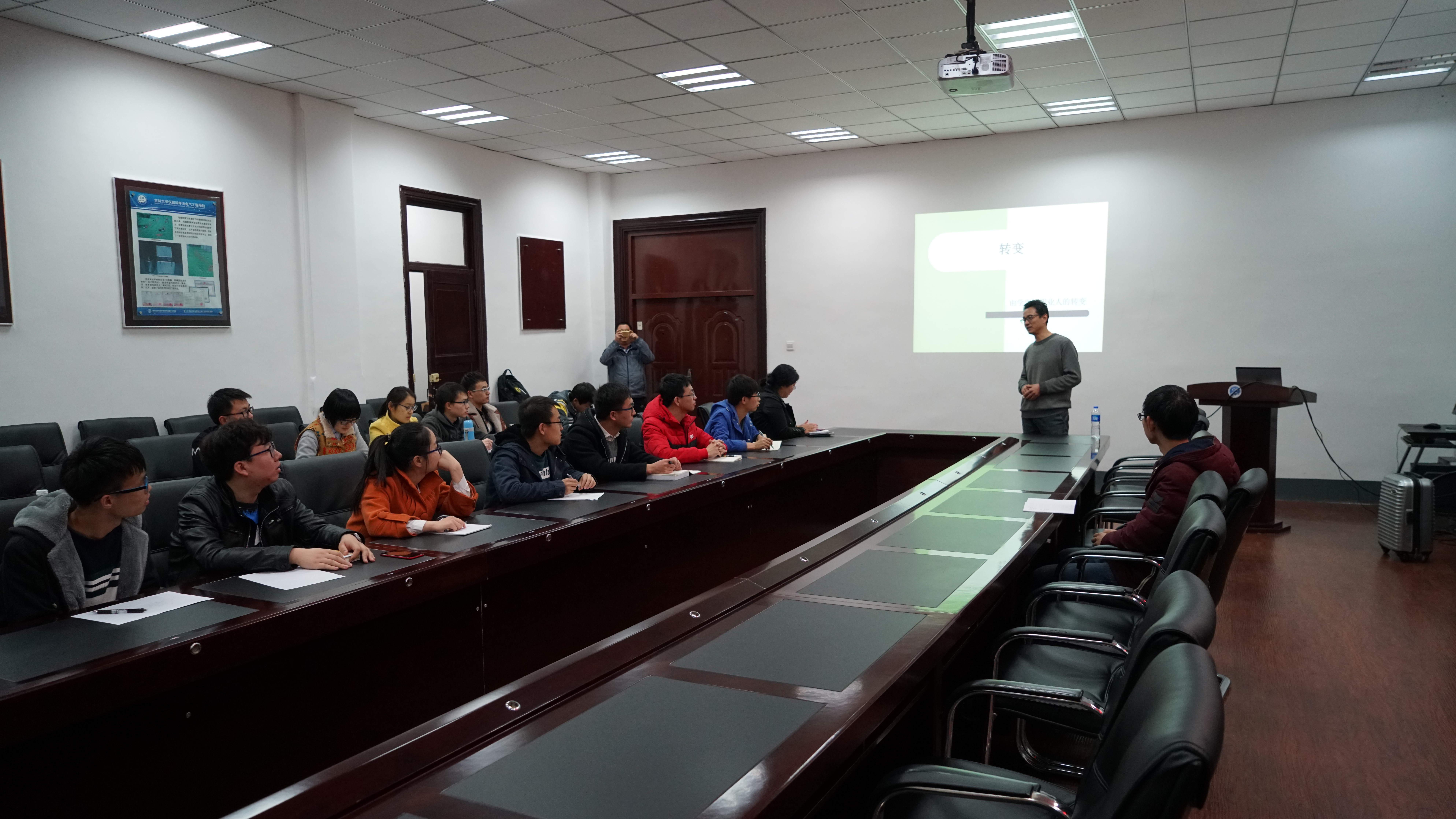 2017年3月28日晚上六点,职业规划讲座在地质宫330海光报告厅正式开始。本次讲座主要分为王晓涛先生对职业规划的介绍和与实验室成员面对面交流提问两个环节。本活动由216+开放实验室千承辉老师主持。活动开始,千老师代表开放实验室热烈欢迎普源精电工作人员的到来,然后王晓涛先生便利用多媒体设备开始了对职业规划的介绍。他详细介绍了职业规划的重要性,并且举出了具体的实例与同学们分享,既加深了同学们对职业规划的理解,又促进同学们对职业规划重要性的领会。同时,王晓涛又指出如今大学生在以后走向工作岗位的一些不足,并提出相应的解决方法。紧接着,王晓涛与实验室成员进行了面对面的交流提问。同学们提出了一些目前困扰学生读研和就业的问题,王晓涛在多方面给出了自己的看法,并详细分析了其中的利与弊,同学们豁然开朗,受益匪浅。最终,在千老师的主持下交流会圆满结束。