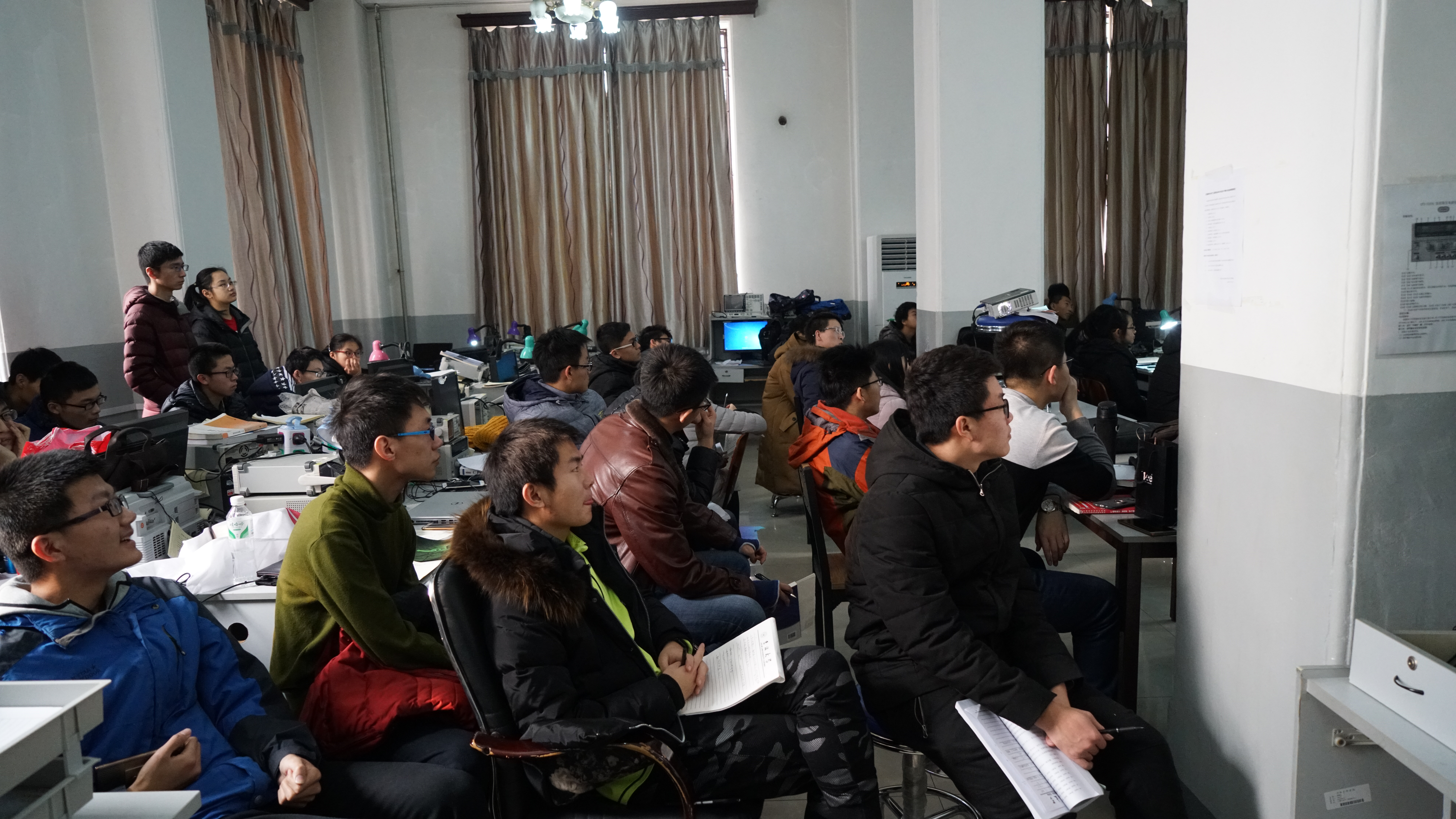 “216+开放实验室”以及大学生科技创新协会组建的科技创新团队计划于2017年1月14日-20日开展寒假社会实践活动。2017年1月19日下午,王远老师来到214实验室为大一同学们讲解了无源元件。