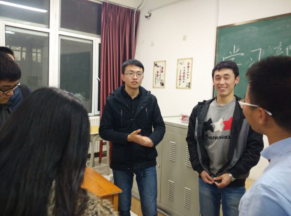 在前卫南区李四光楼110教室举行全体部员见面会,会议由学习部部长赵成主持,学习部副部和全体部员参加会议。