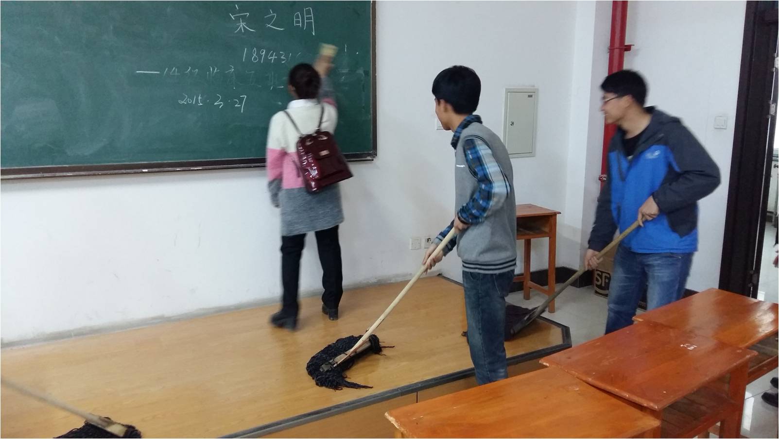 当天下午,志愿者们有序进入到李四光楼内参加了义务打扫卫生活动。活动期间,青年志愿者们热情高涨,分工有序。在协会会长、副会长的带领下,大家领取清扫工具,并分成四组分别对李四光楼走廊墙面、地面以及楼梯过道处进行了仔细的清理,将同学们上课留下来的垃圾清理带走,为同学们营造一个良好的学习环境。3月28日李四光楼将迎来博士生考试,为了向外校来考试的同学展示更美的吉大,志愿者们清扫的更加细心和耐心。活动结束后,大家纷纷表示,将继续为营造干净、整洁、文明、和谐的校园环境贡献自己的力量。