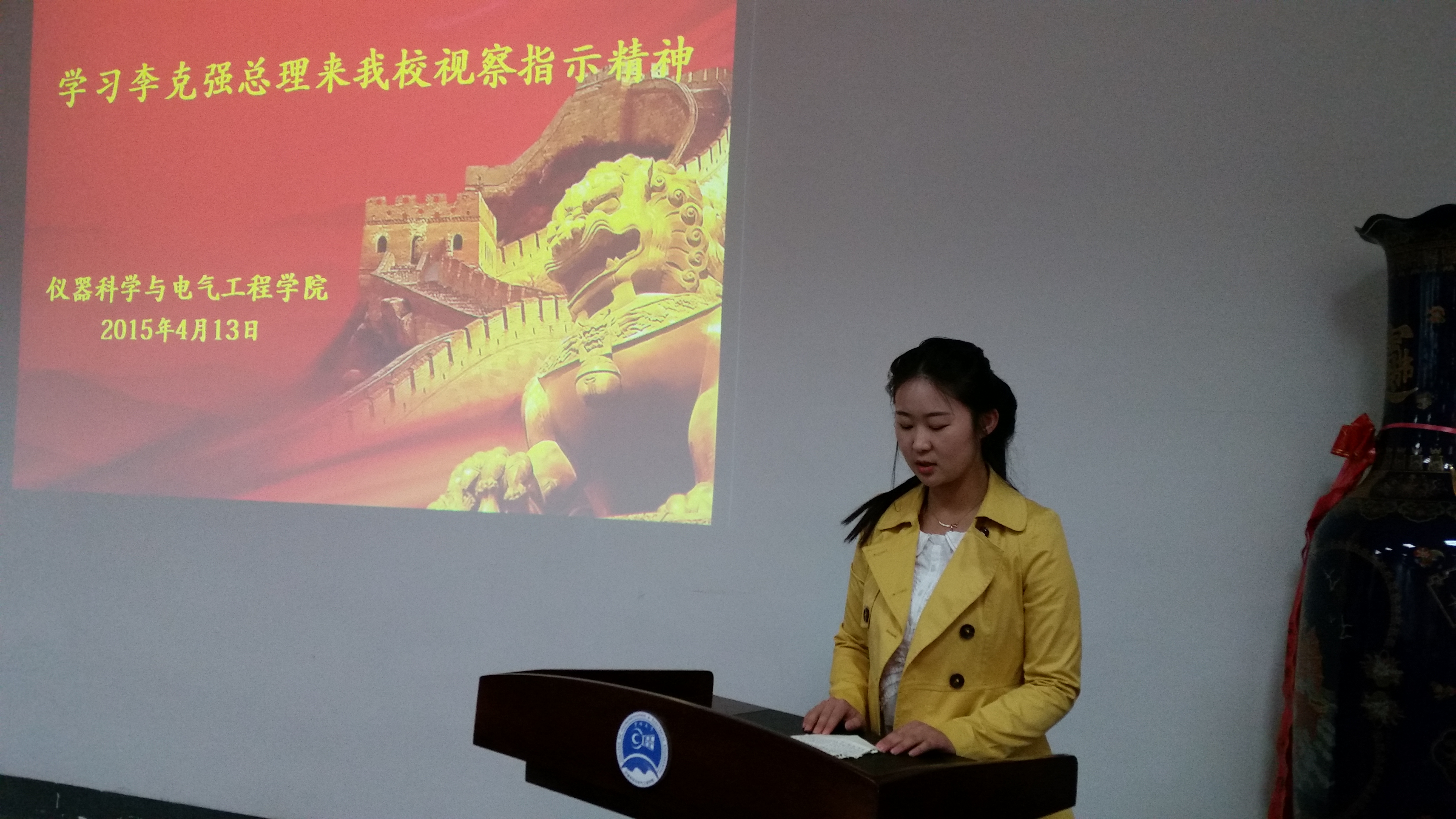 团委于2015年4月13日9:00在朝阳校区地质宫330室组织召开了“学习总理来我校视察指示精神报告会”。女同av