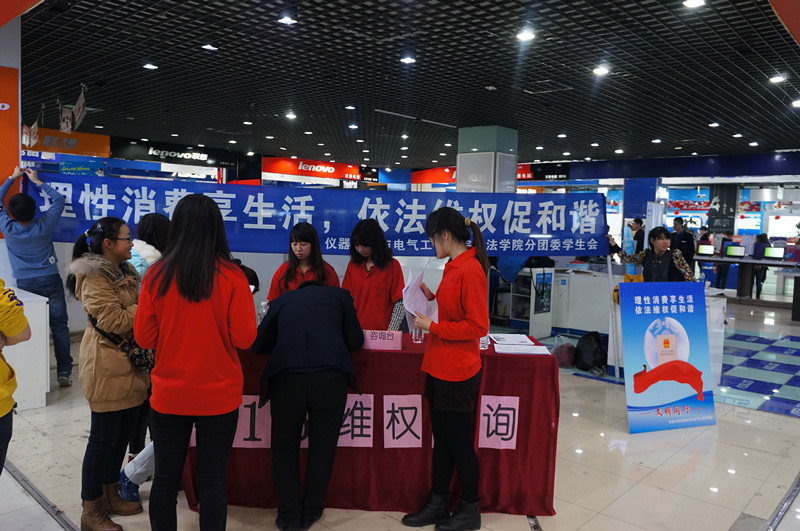 团委号召学生率先学法知法懂法,并传播法律知识,在3月15日国际消费者权益日举办以“理性消费享生活,依法维权促和谐”为主题的系列活动,来帮助更多市民使他们懂得利用法律的途径来保护自身合法权益。