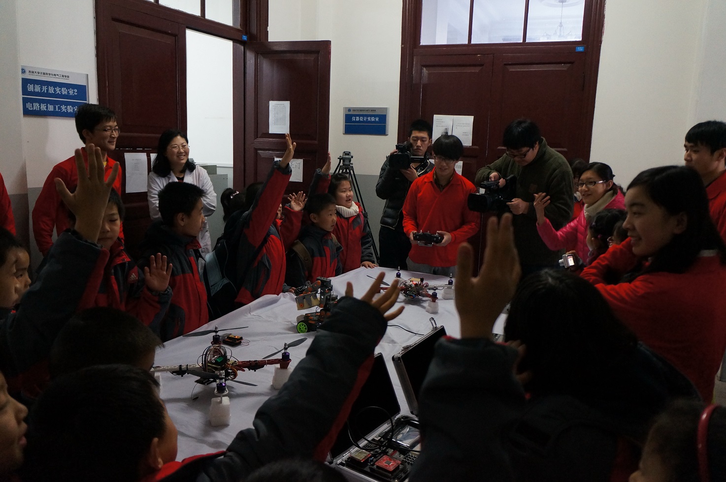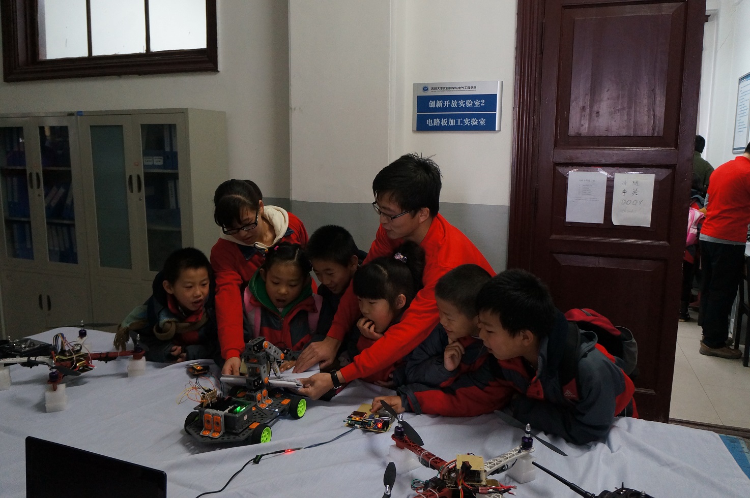 大学生党员志愿者在院团委书记兼本科生党支部书记朱宇、本科生党支部副书记张昊宇及学院主要学生干部的带领下热情地接待了他们,并对孩子们的到来表示热烈欢迎。随后科技参观活动正式开始,孩子们在女同av