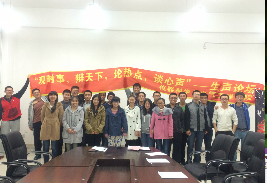 团委组织策划了“生声论坛”系列活动。2014年10月26日,第十四期“生声论坛”活动以“专业知识学习和学生社团工作哪个更重要”为主题在中心校区李四光实验楼举行,参加本期论坛的有第十届学生会秘书部以及学习部的全体成员。