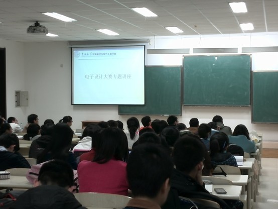 团委、学生会于2014年4月15日晚在中心校区李四光楼206教室召开了大学生电子设计竞赛专题讲座。讲座由学院2010级优秀学生代表裴利然主讲,学院2013级全体同学参加。