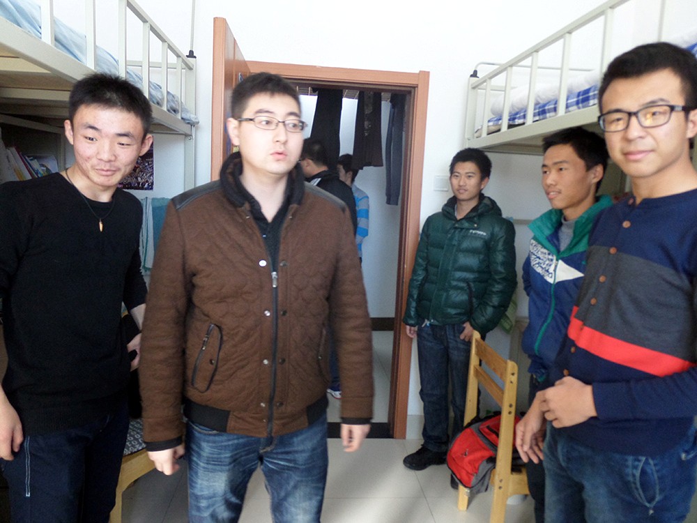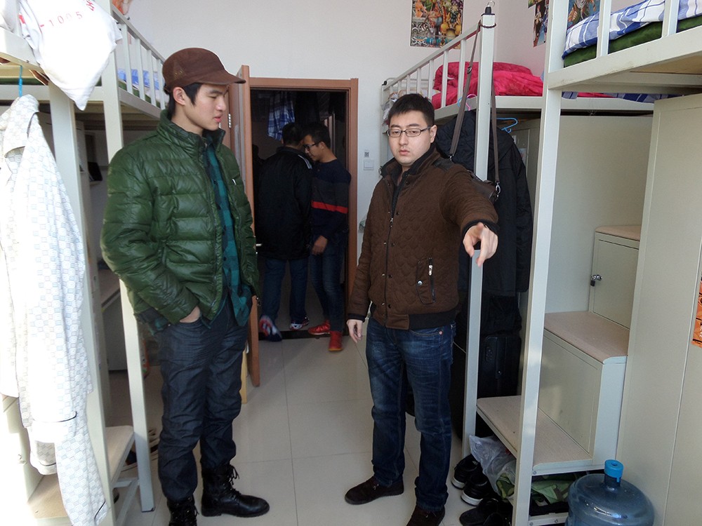 在中心校区,2012级辅导员蔡印老师首先到达北苑一公寓,并受到学生的热烈欢迎。同学们的公寓干净整洁,温馨舒适,寝室布置各具特色,书香浓郁,蔡老师对同学们的寝室卫生及寝室文化给予了高度的评价。随后,蔡老师针对吉林省松原频发地震之事进行了走访慰问,与此同时,他还针对一旦发生地震的应急措施和逃生知识进行了普及和宣传,强调大家要用科学的眼光对谣言进行粉碎,并教育同学们要信任科学,勿信、勿散谣言,同学们也纷纷表现出了对科学力量的崇尚和抵制谣言的决心。