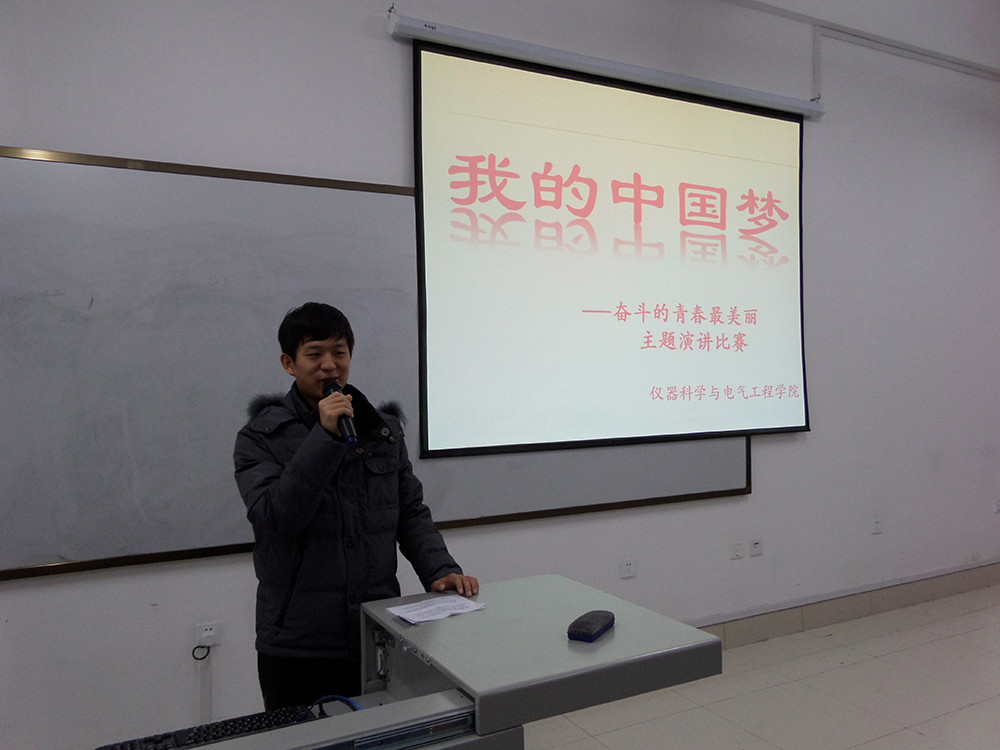 活动于18:00准时开始,此次演讲比赛以一曲激昂的青春励志歌曲拉开序幕,在主持人激昂的介绍中,学院2012级12名优秀学生代表依次登台进行精彩的演讲。周晖同学恰当地引用了“士不可以不弘毅,任重而道远”阐述了个人理想与中国梦之间的关系,并号召大家要通过自身的努力奋斗来不断实现理想;刘帅男同学用诙谐幽默的语言讲述了自己“学习娱乐不分家”的故事,告诉大家在享受大学生活的同时,要记住学习是生活重要的一部分,永远不要忘记学习;宋继斌同学用严谨而富有条理的语言分析了目标与追求的辩证关系,并寄希望于所有同学,希望大家不断调整自己的目标,做一个积极追求的人……接着,各位评委对12位选手进行公正的打分评比。最后,蔡印老师对这次演讲比赛进行了总结点评,他强调:学习如果讲究方法,也许就会起到事半功倍的效果,并勉励大家要努力学习,珍惜时间,为实现自己的“大学梦”和伟大的“中国梦”而努力奋斗