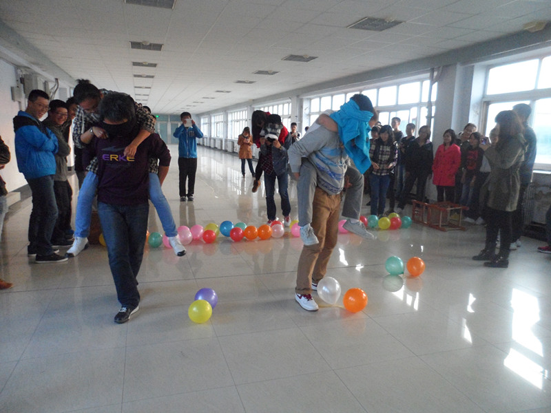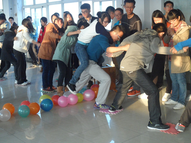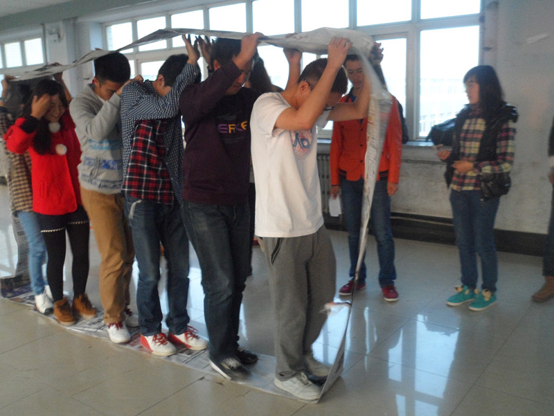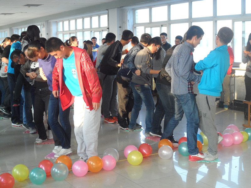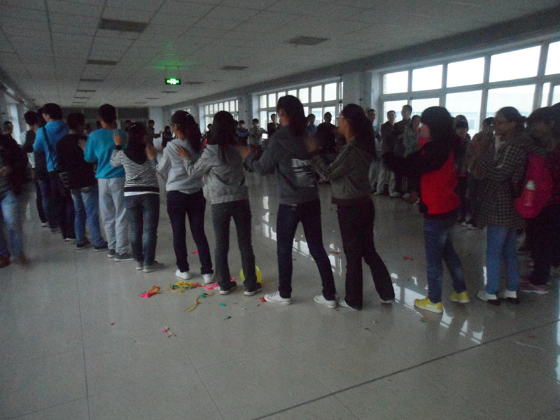 此次素质拓展活动采取“分组比赛,良性竞争”的比赛方式进行,由“闪亮登场”、“诺亚方舟”、“激情四射”、“那些年,那些时光”四个环节组成。为了取得最后的胜利,各队集思广益,尽出奇招,积极展示各自的才艺才能。在最为激烈的是抢答部分,为了能抢到ABCD四个指定的区域,大家都使出浑身解数,力争上游,虽然在活动过程中难免出现一定的身体碰撞,但这反而促进了同学间心灵的沟通契合,加强了团队的配合默契,加深了大家对团结合作精神的认识。比赛结束后,活动别出心裁地设置了“惩罚”环节,分数最低的队伍用臀部分别拼出数字“2”“6”“8”,活动在同学们的欢声笑语中圆满结束。最后,大家围成一个圈做游戏并拍照留念。