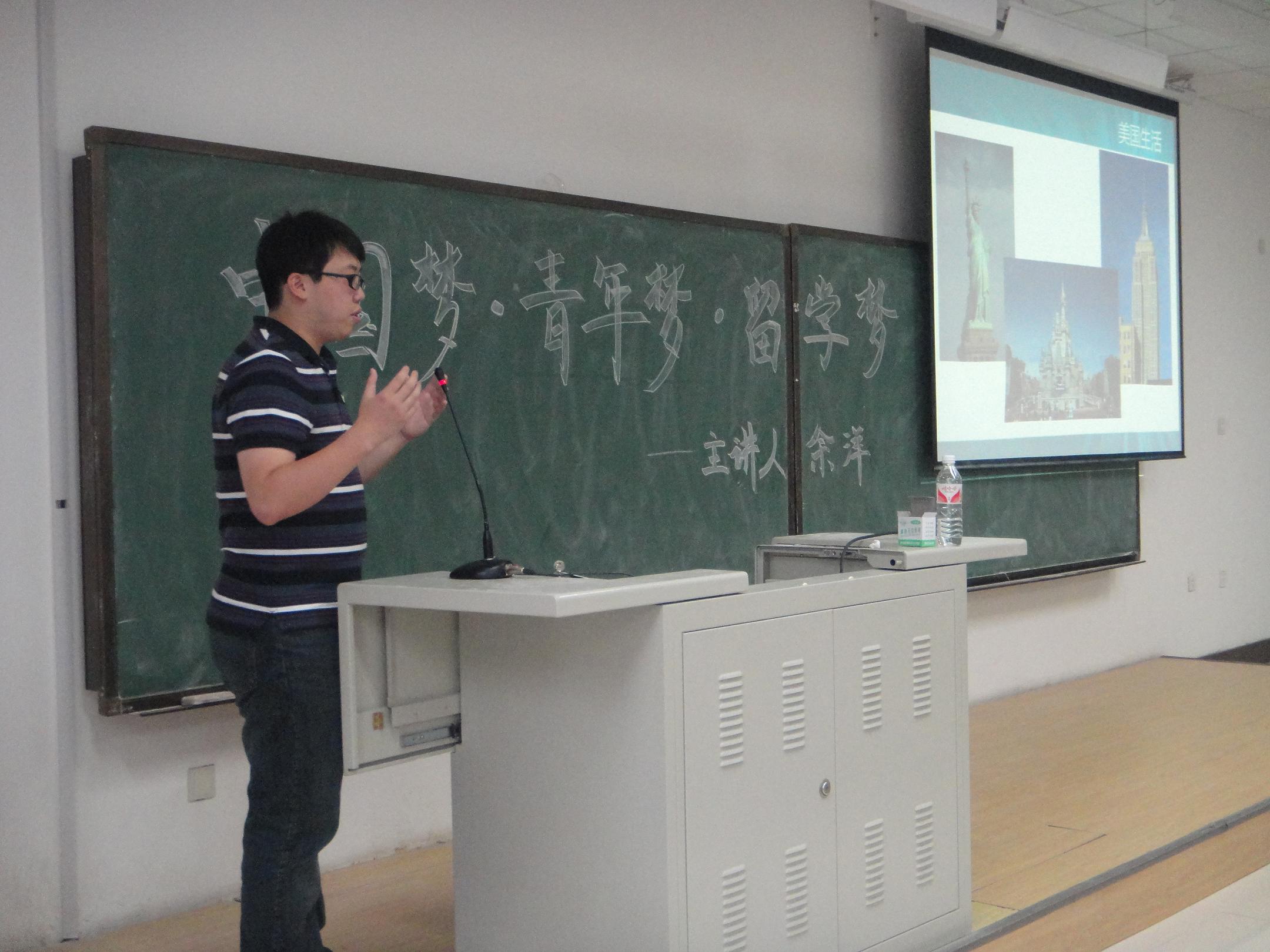 2012届本科毕业生余洋同学作为嘉宾主讲人,为青年学生讲解留学知识,引导青年学生思考“中国梦”与“美国梦”的异同。女同av