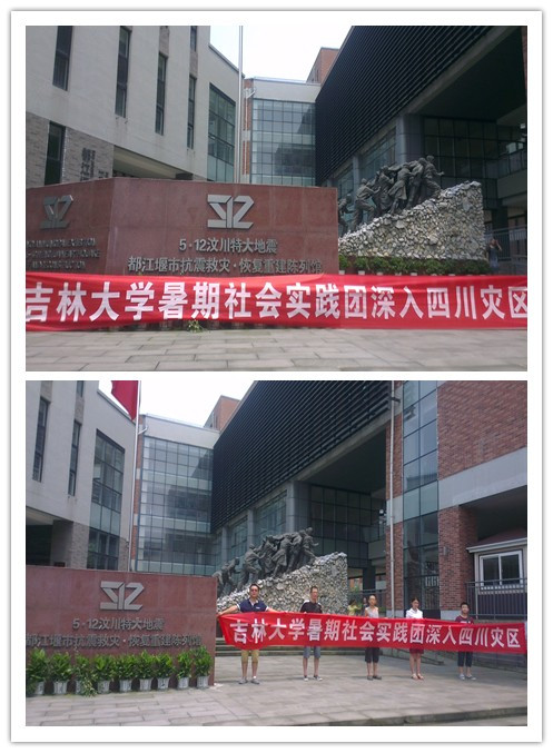 顶着炎炎烈日,社会实践团一行乘车于当天中午到达了四川省都江堰市,随后立即前往参观“5•12”四川汶川特大地震都江堰市抗震救灾·恢复重建陈列馆。在陈列馆门前,许多游客和当地群众看到不远千里来到这里的女同av