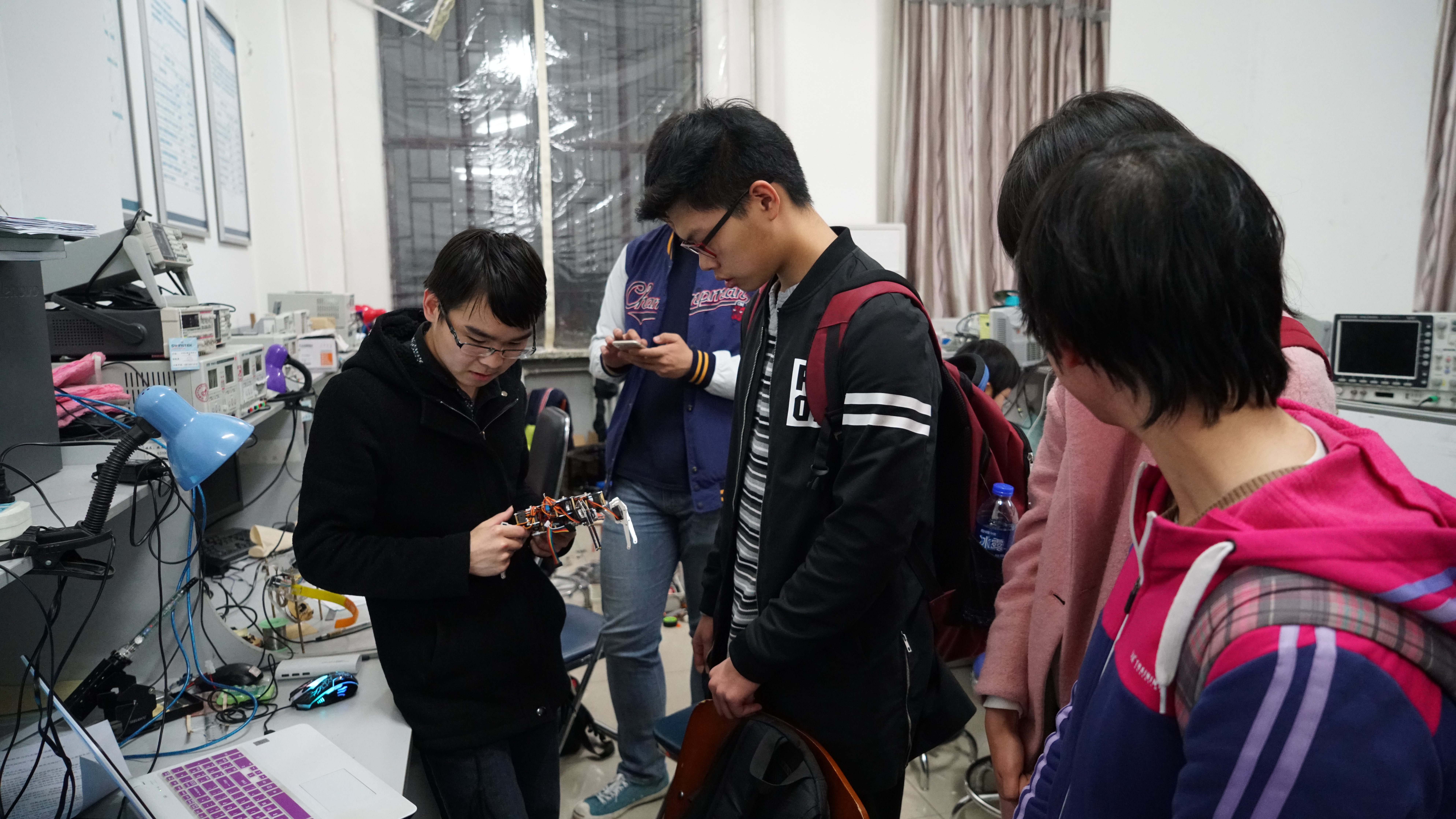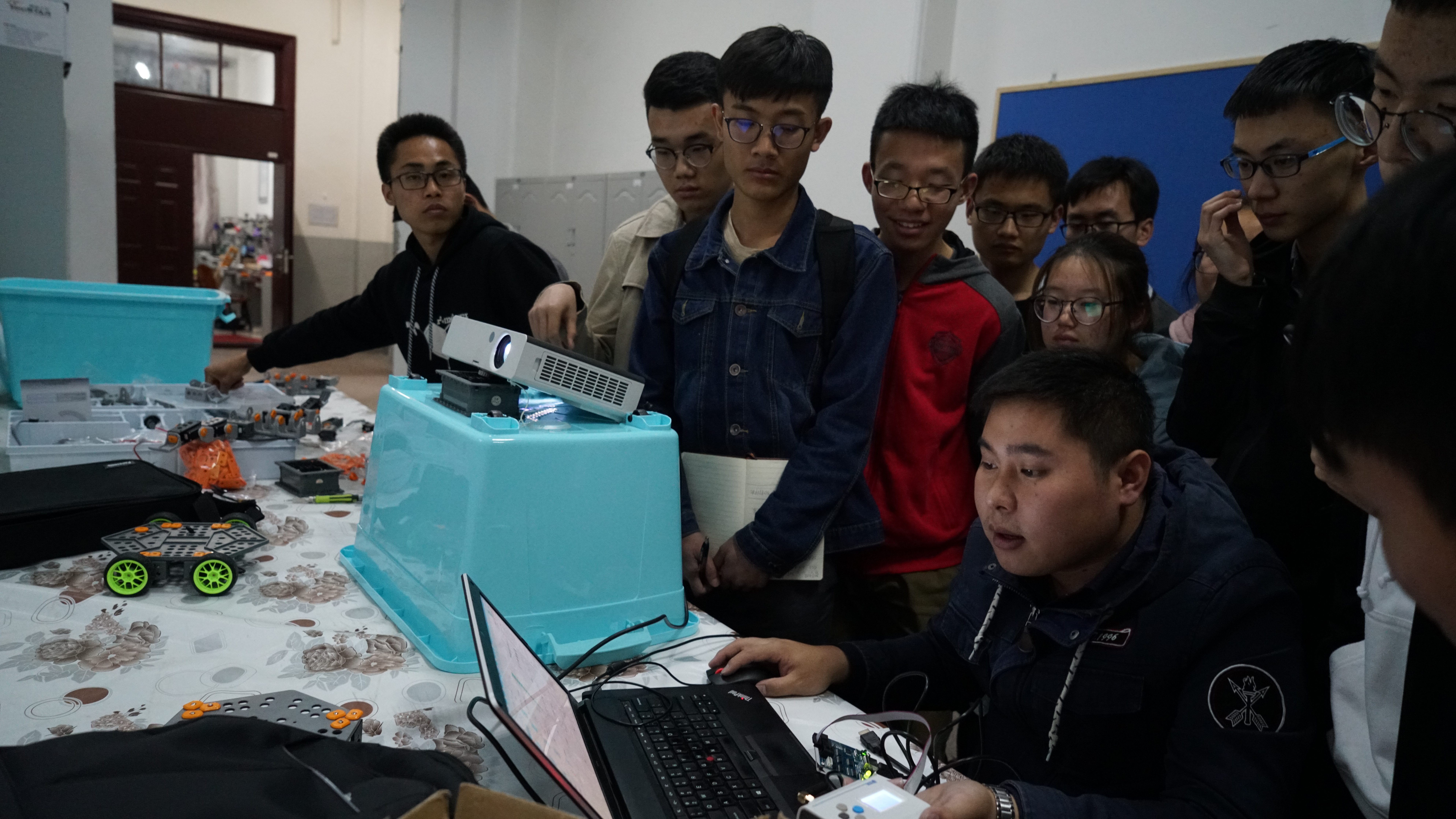 第一届机器人大赛,2017年4月26日晚上,博创机器人工程师来到朝阳校区地质宫216,对2016级216+开放实验室机器人小组进行培训。本次培训活动由大学生科技创新协会承办。