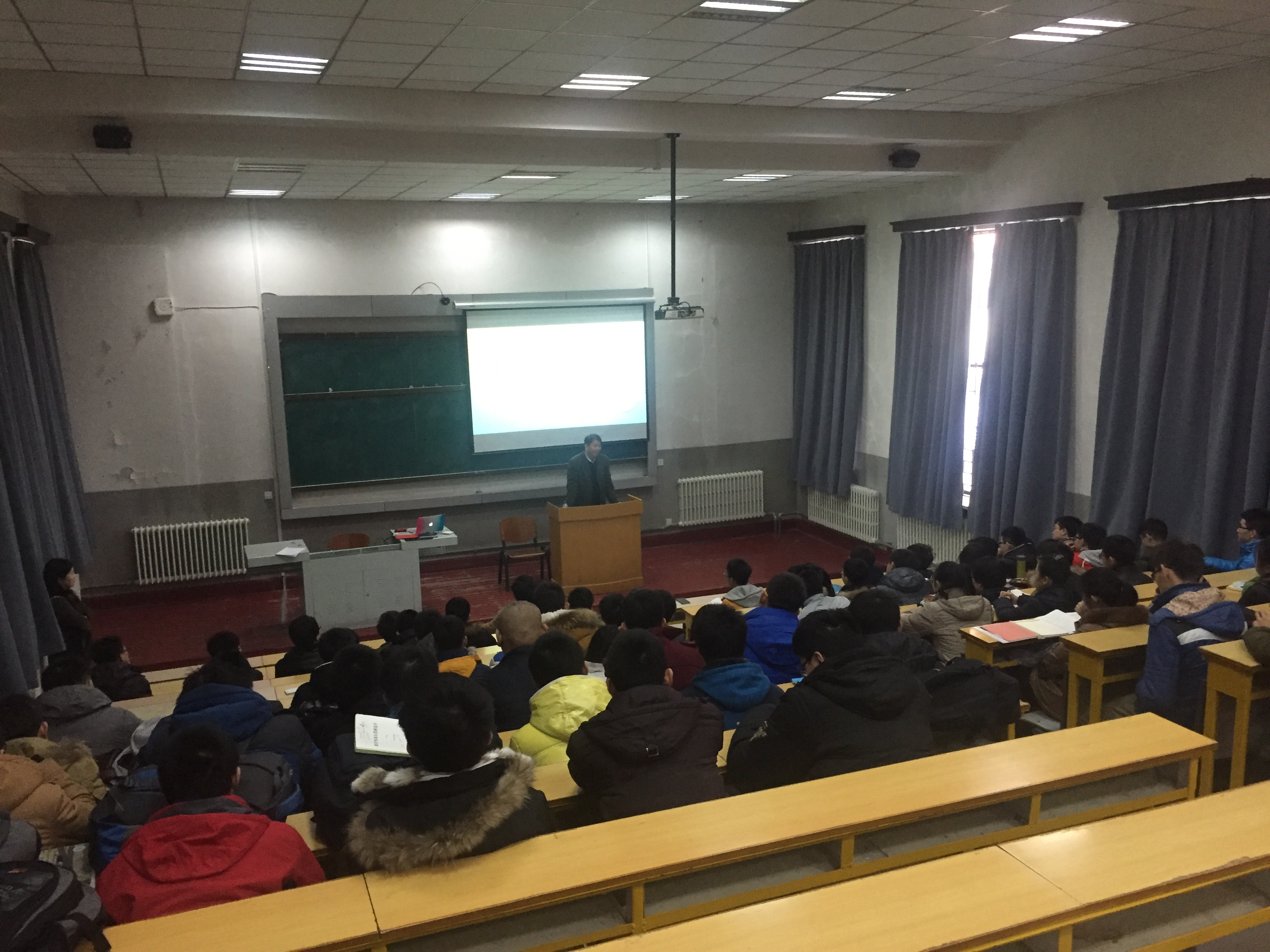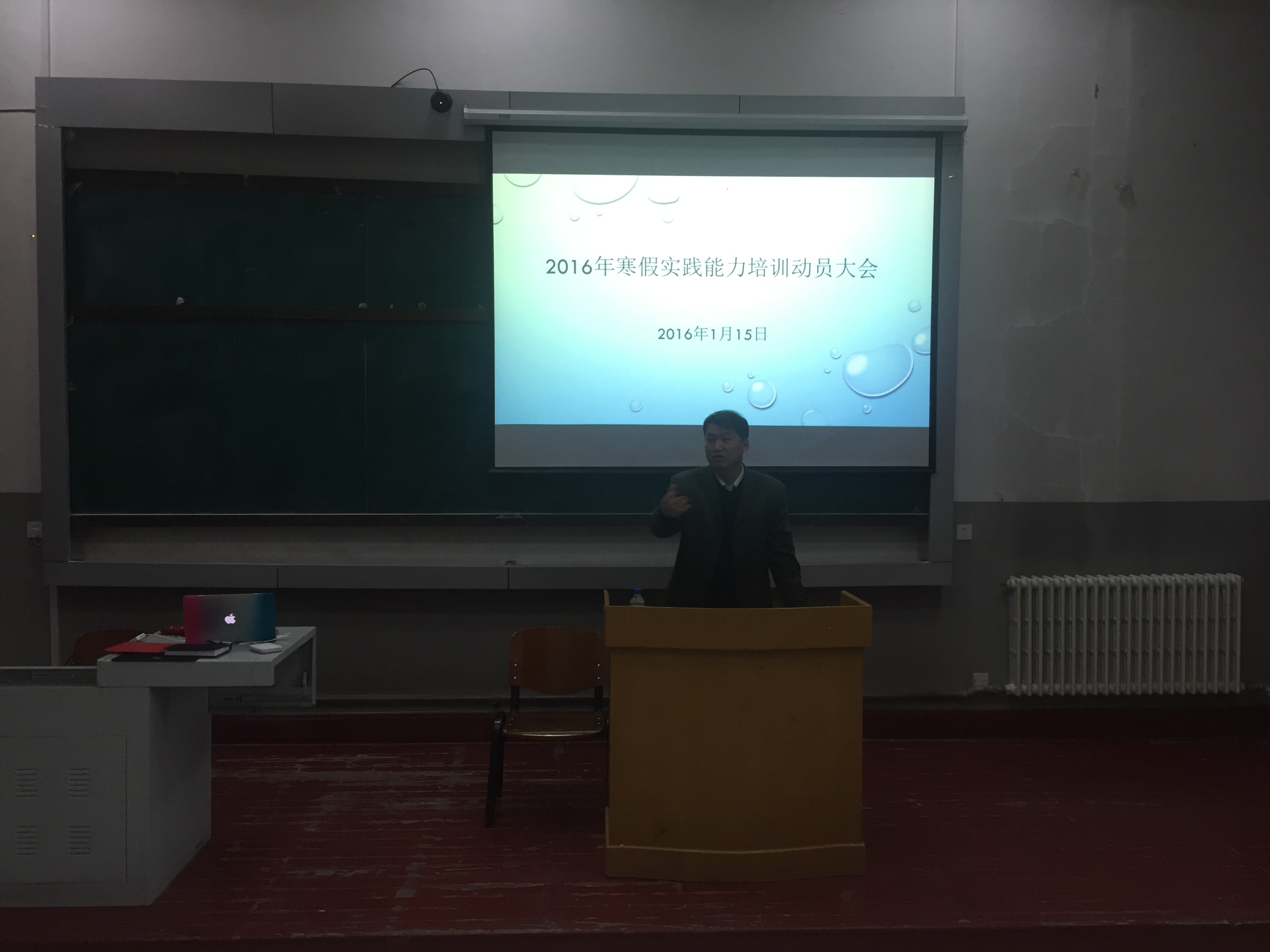 动员大会由实验中心副主任,“216+开放实验室”科技创新团队队长千承辉老师主持。大会开始,凌振宝教授首先对大家积极进取的热情给予了充分肯定,但也为大家指出这段培训的时光并不轻松,需要大家做好心理准备,希望大家能够认真并充实地度过这10天的实践。凌振宝教授通过多年教学指导总结的经验告诉大家:“实践创新能力是学院重视的方面,也是我们同学比较欠缺的方面。”他客观地指出我们学院目前整体水平很强,但是缺少的是能够从书本的知识上有所发展,有所突破的创新精神,并对此次参加培训的同学们给予了很高的期望。随后院党委副书记兼副院长邱增凯老师指出,学院十分重视本次寒假社会实践培训活动,希望同学们能在本次培训中都能有属于自己的收获。接着邱增凯老师又十分细心地提醒大家注意培训期间的安全问题,对大家在朝阳校区的学习生活方面进行了细致的安排,并预祝各位参加培训的同学取得优异的成果。